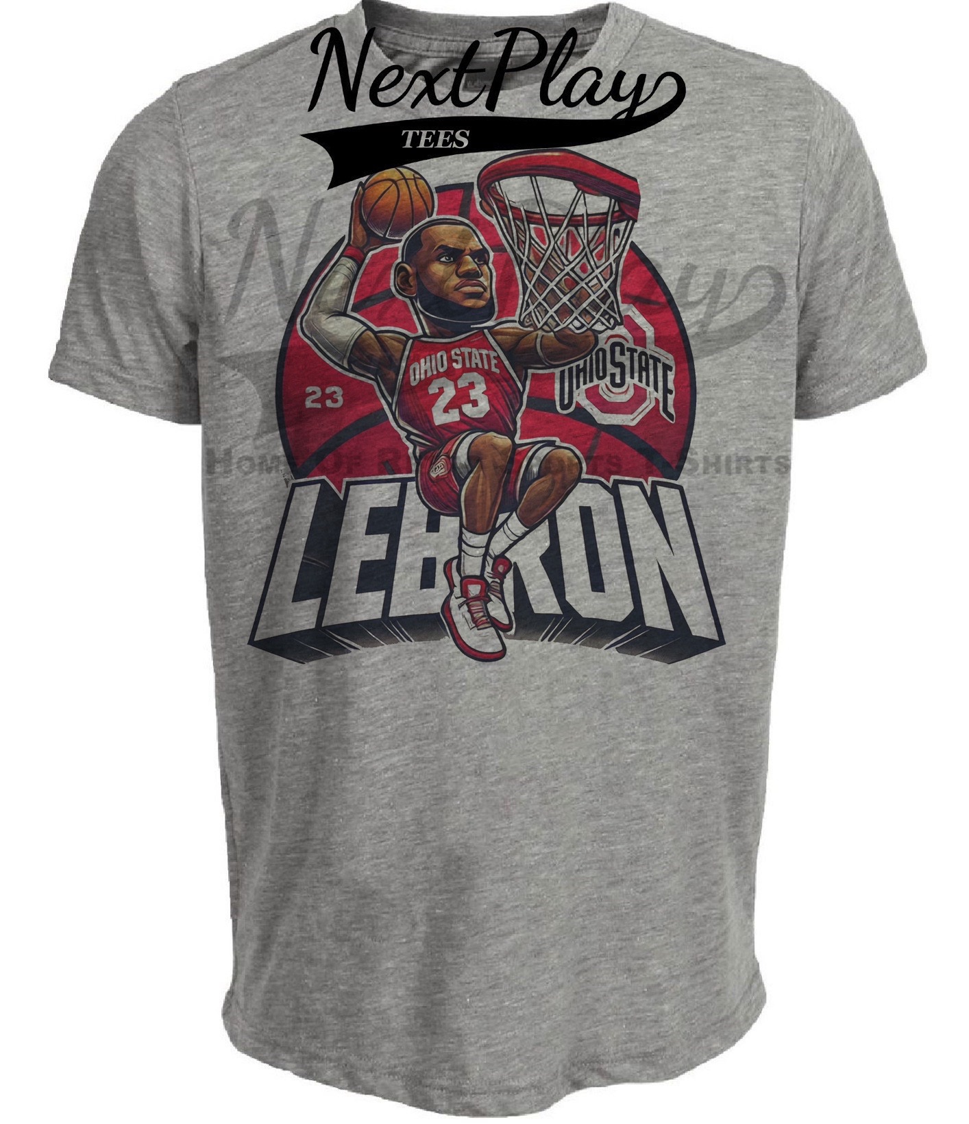 Ohio State Buckeyes LeBron James Exclusive Retro March Madness Basketball Artwork Heather Gray Sublimated T-Shirt