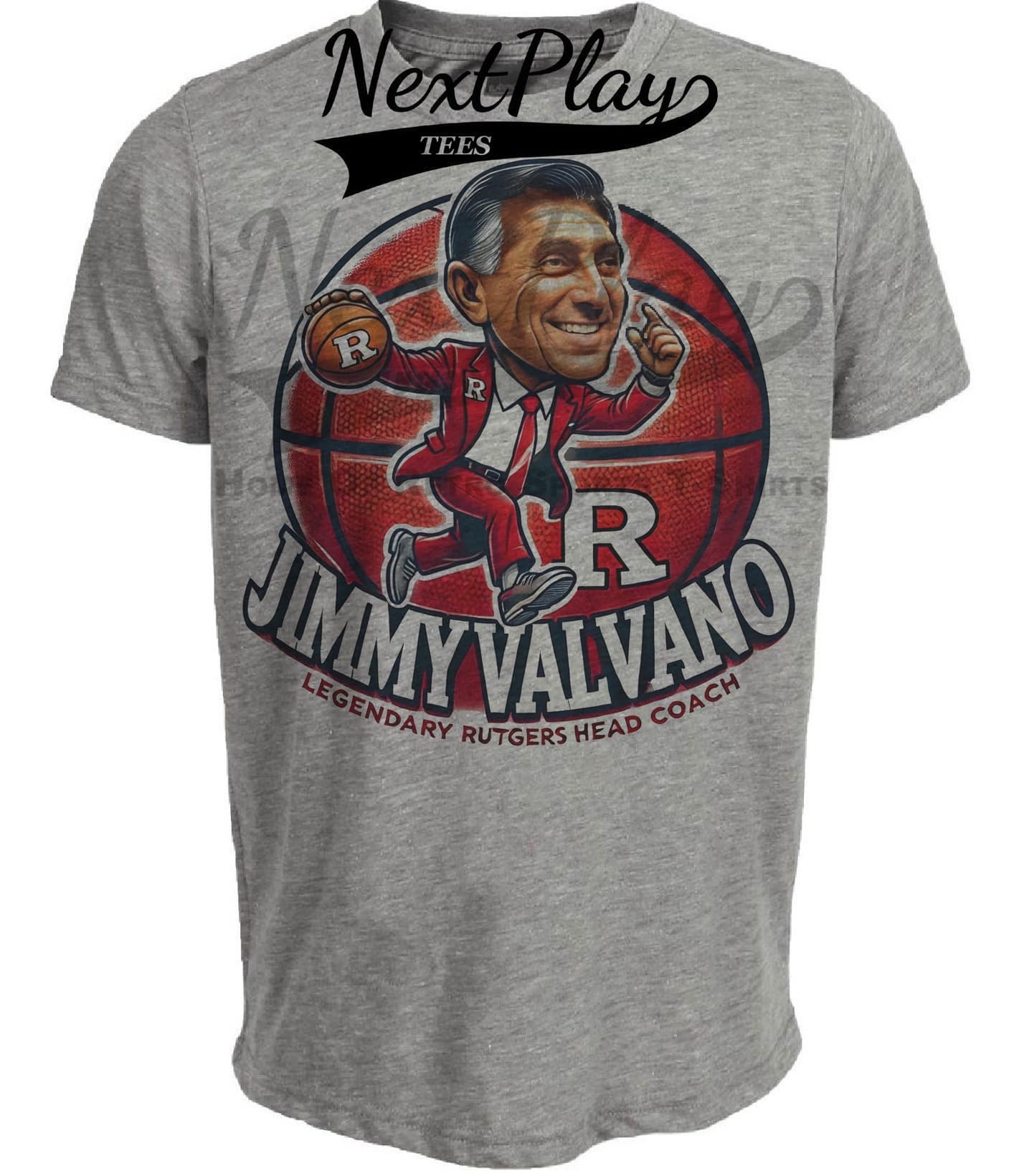 Rutgers Scarlet Knights Coach Jimmy Valvano Exclusive Retro March Madness Basketball Artwork Heather Gray Sublimated T-Shirt