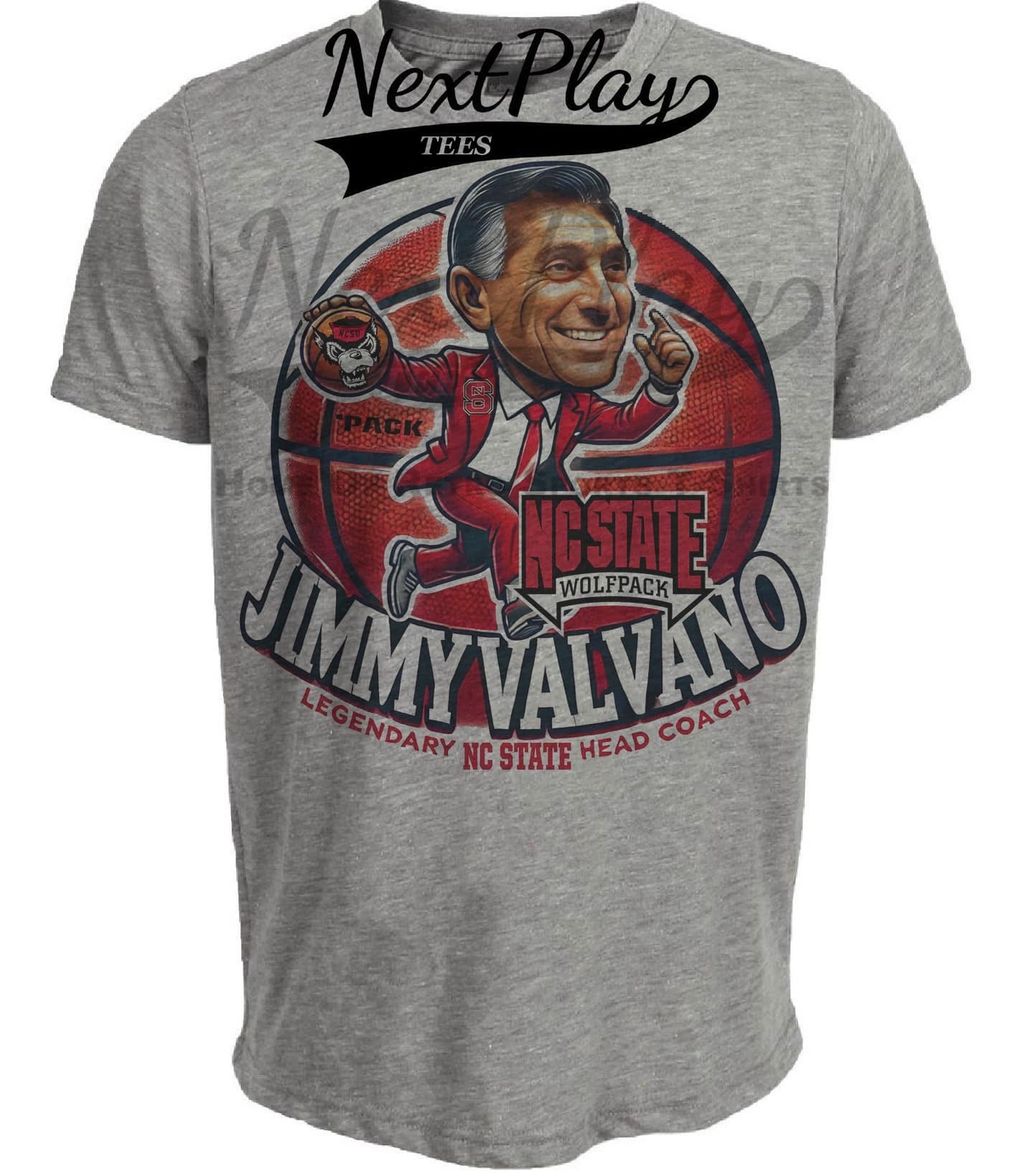 NC State Wolfpack Coach Jimmy Valvano Exclusive Retro March Madness Basketball Artwork Heather Gray Sublimated T-Shirt