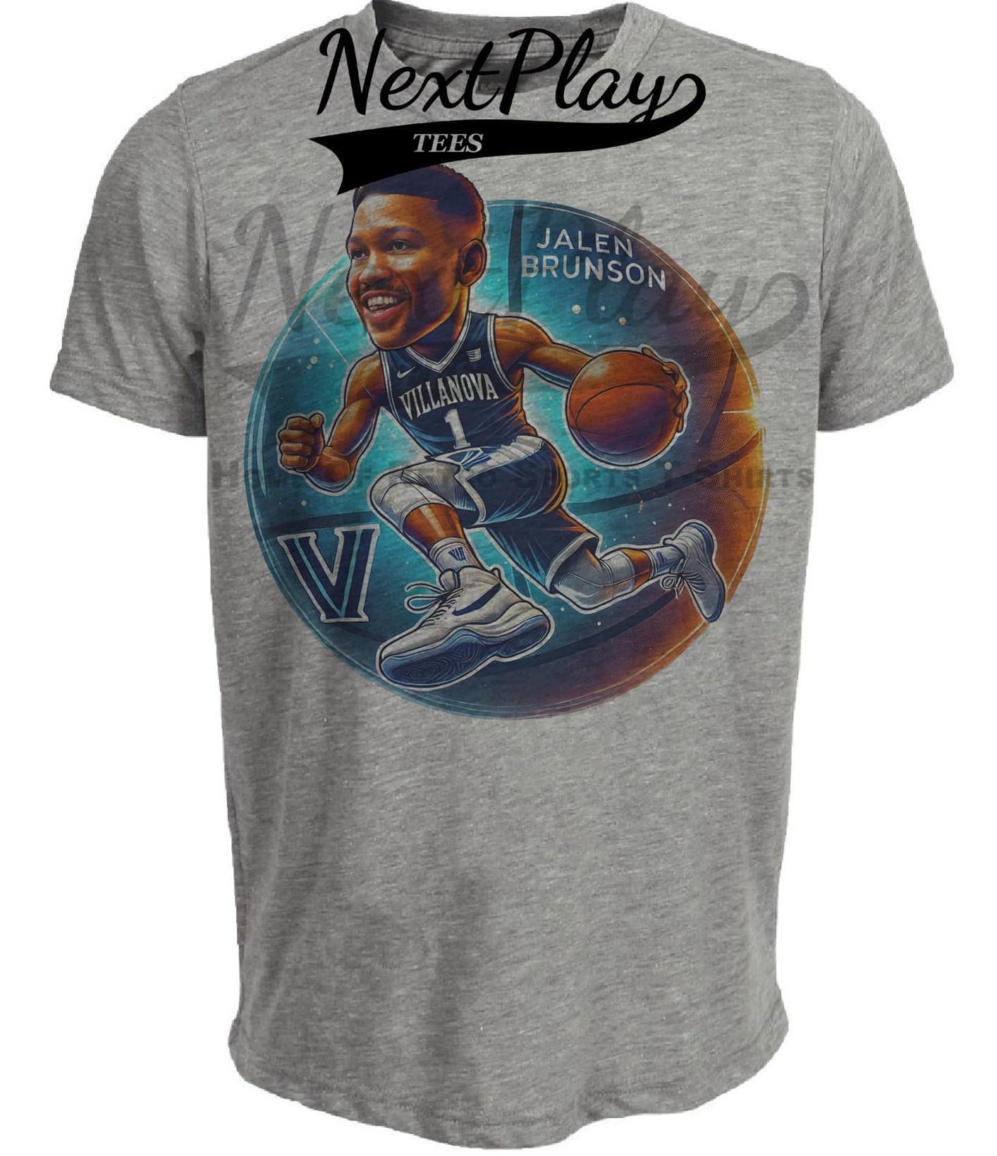 Villanova Wildcats Jalen Brunson Exclusive Retro March Madness Basketball Artwork Heather Gray Sublimated T-Shirt
