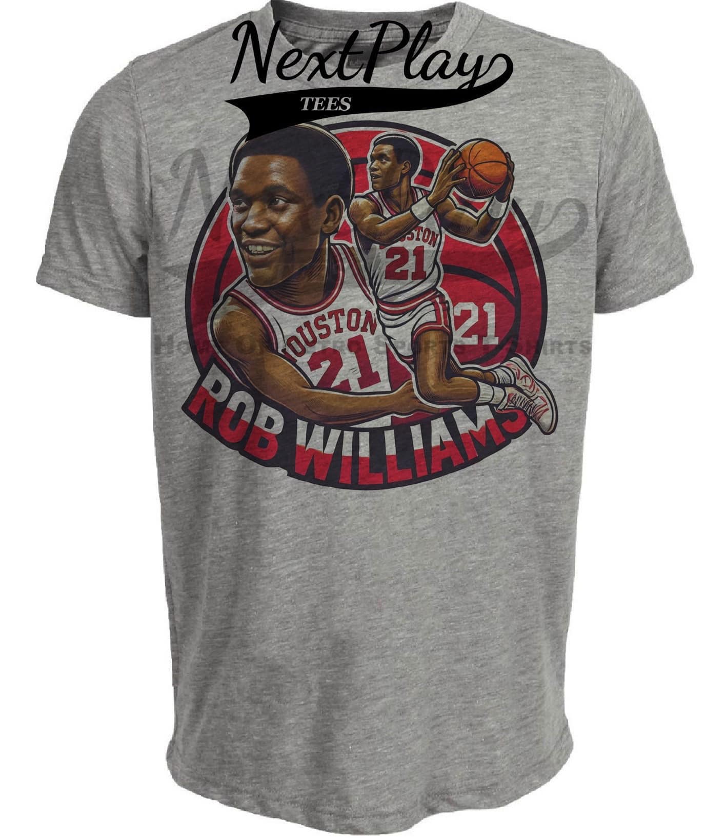 Houston Cougars Rob Williams Exclusive Retro March Madness Basketball Artwork Heather Gray Sublimated T-Shirt