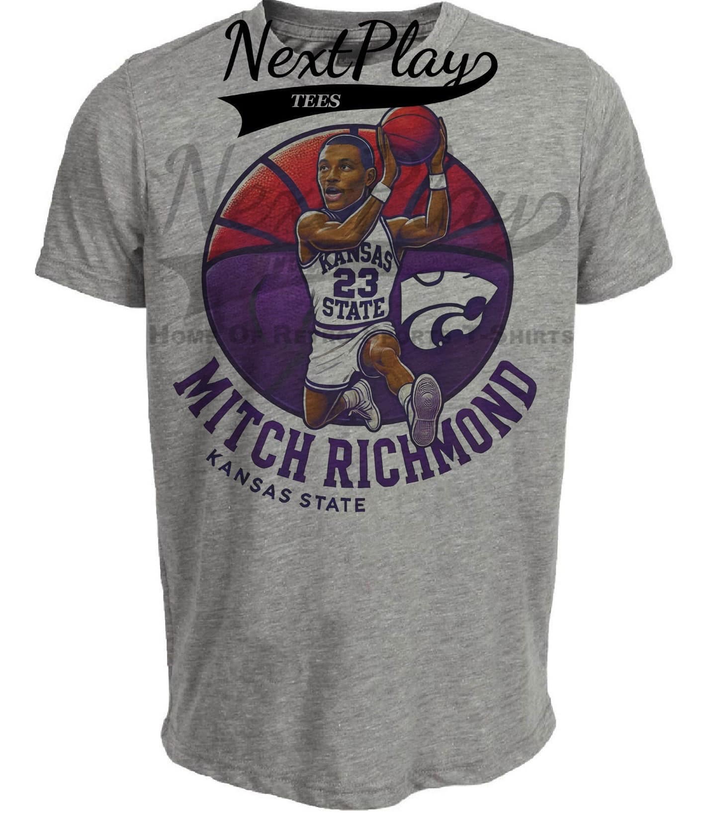 Kansas State Wildcats Mitch Richmond Exclusive Retro March Madness Basketball Artwork Heather Gray Sublimated T-Shirt