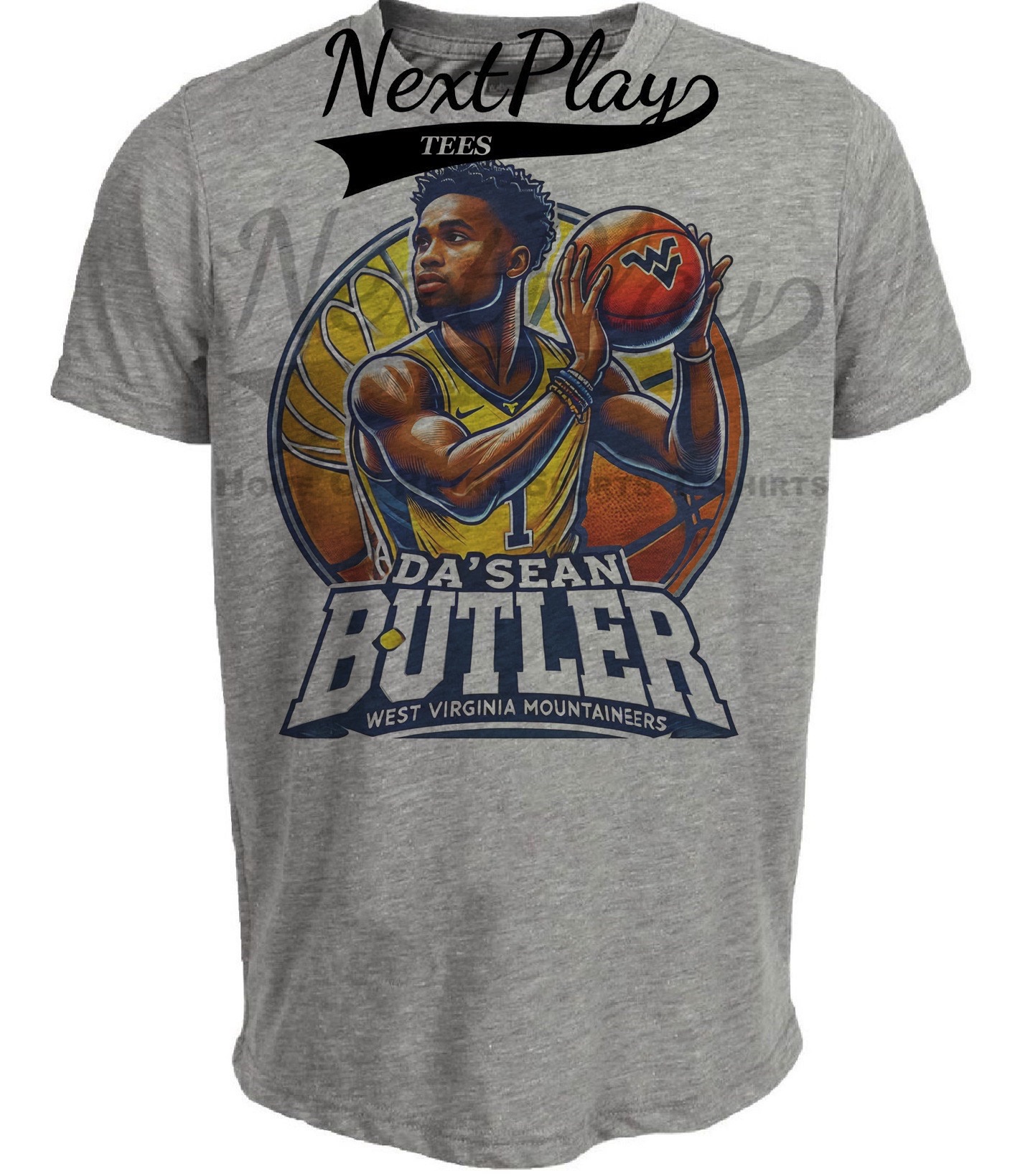 West Virginia Mountaineers Da’Sean Butler Exclusive Retro March Madness Basketball Artwork Heather Gray Sublimated T-Shirt
