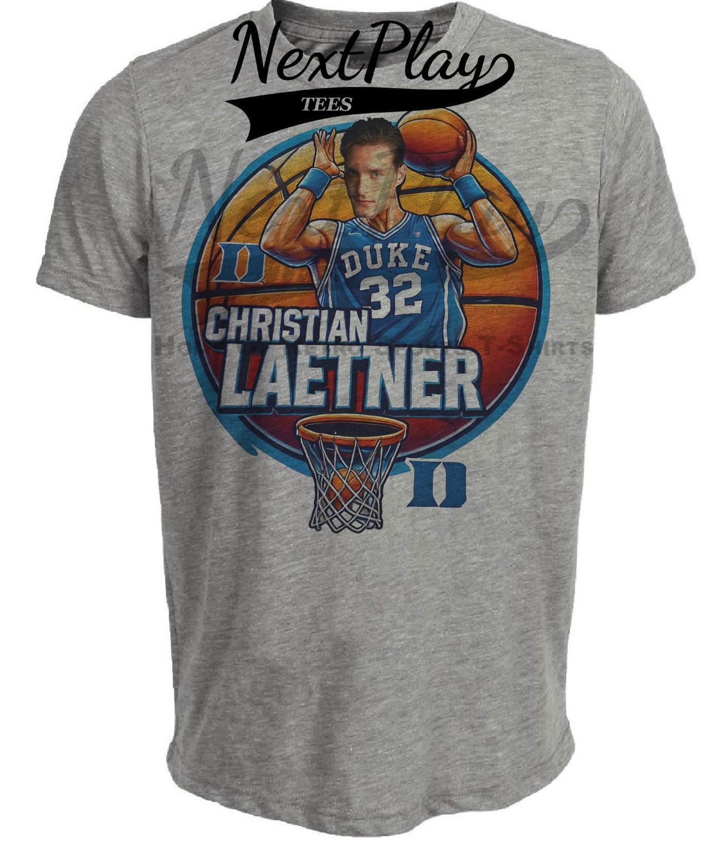 Duke Blue Devils Christian Laetner Exclusive Retro March Madness Basketball Artwork Heather Gray Sublimated T-Shirt