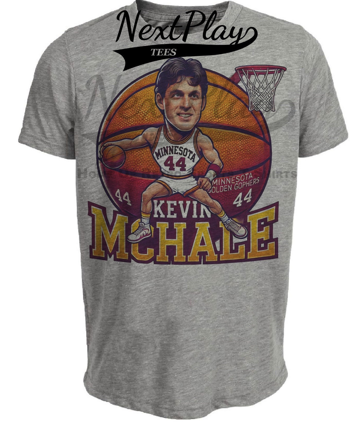 Minnesota Golden Gophers Kevin McHale Exclusive Retro March Madness Basketball Artwork Heather Gray Sublimated T-Shirt