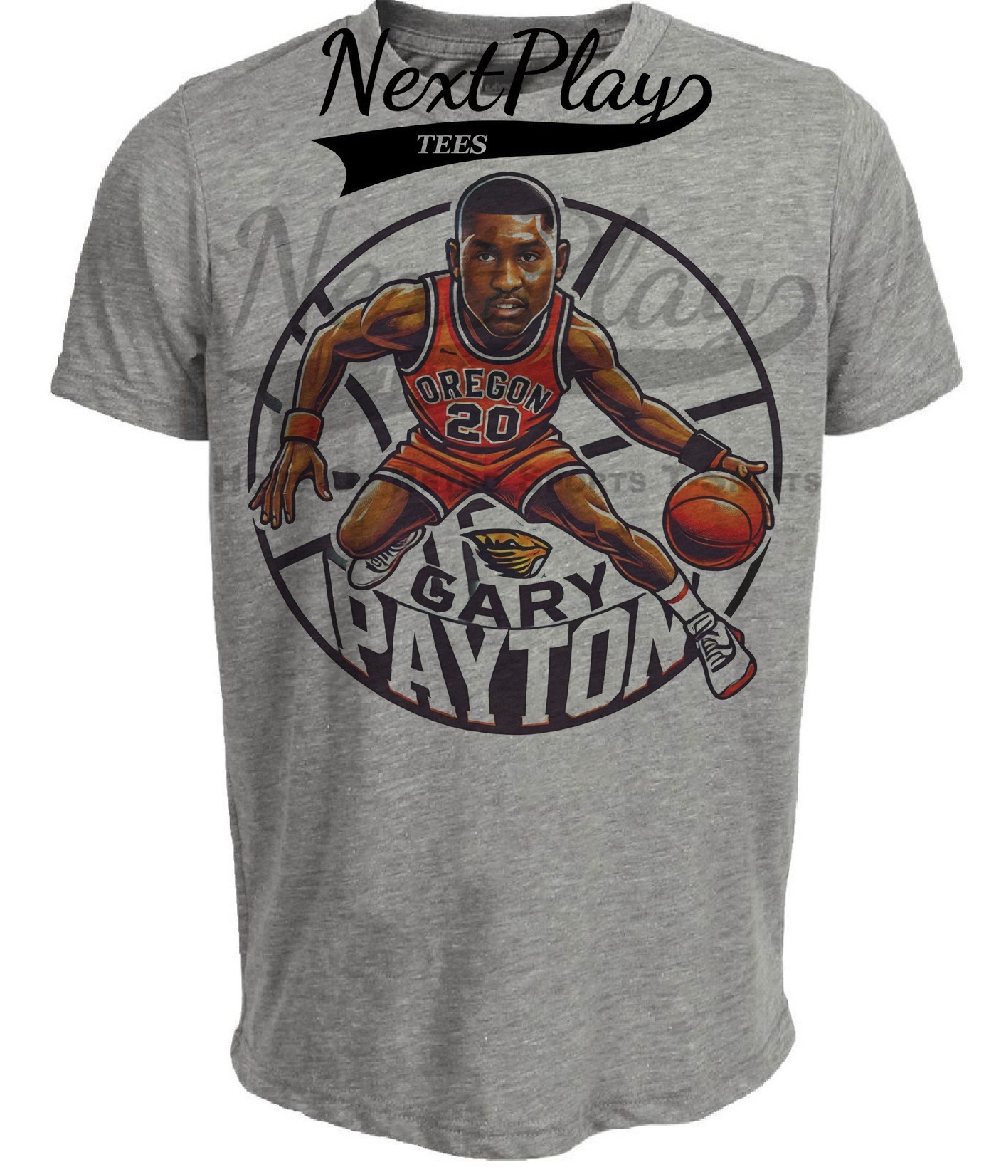 Gary Payton Exclusive Retro March Madness Basketball Artwork Heather Gray Sublimated T-Shirt