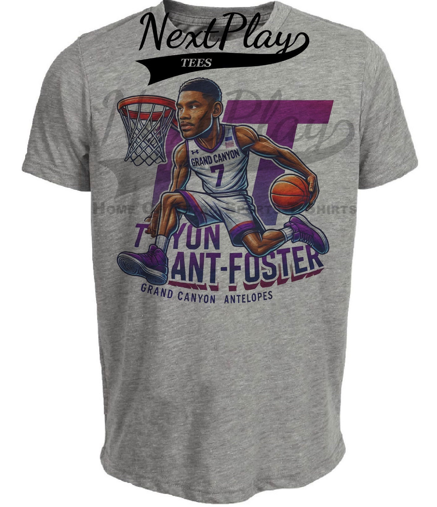 Grand Canyon Antelopes Tyon Grant Foster Exclusive Retro March Madness Basketball Artwork Heather Gray Sublimated T-Shirt