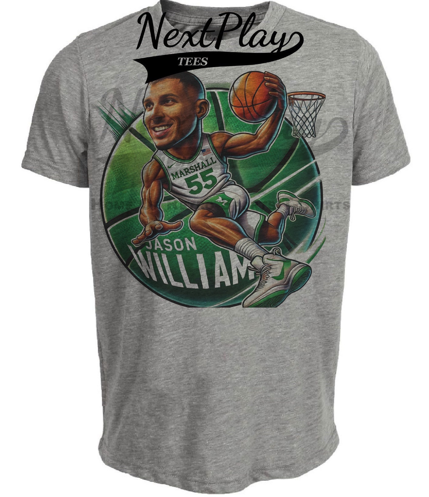 Marshall Thundering Herd Jason Williams Exclusive Retro March Madness Basketball Artwork Heather Gray Sublimated T-Shirt