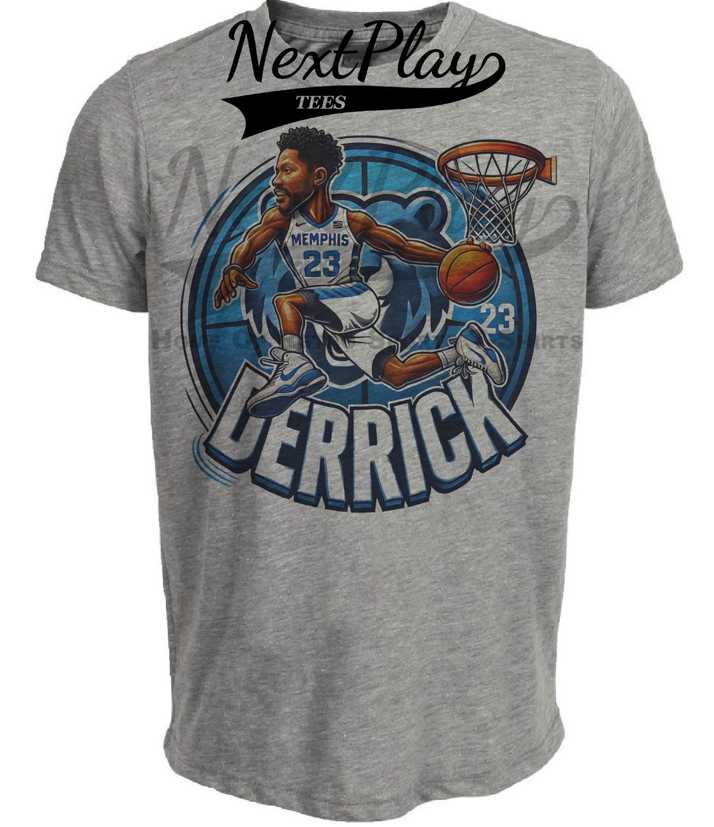 Memphis Tigers Derrick Rose Exclusive Retro March Madness Basketball Artwork Heather Gray Sublimated T-Shirt