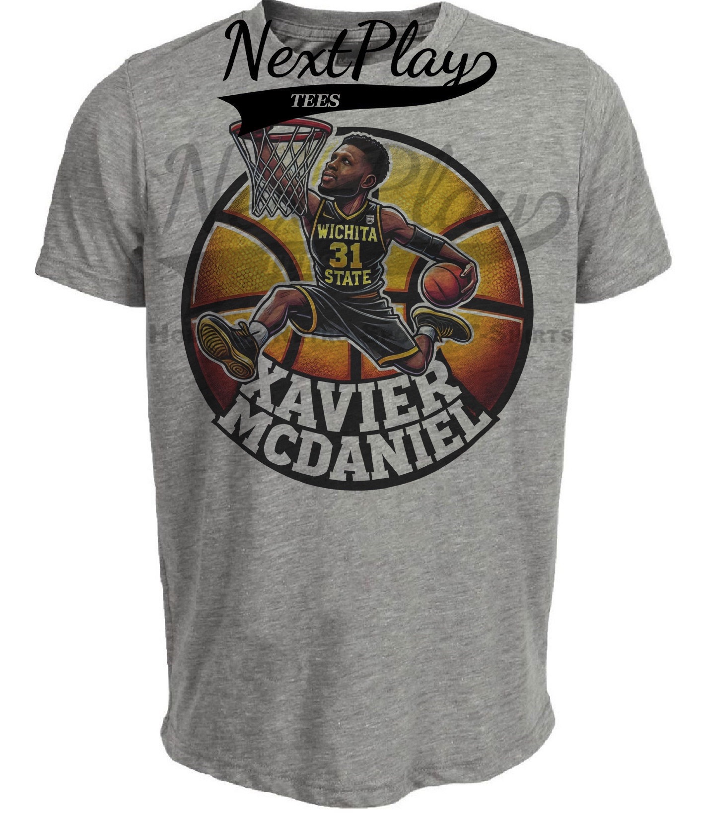 Wichita State Shockers Xavier McDaniel Exclusive Retro March Madness Basketball Artwork Heather Gray Sublimated T-Shirt