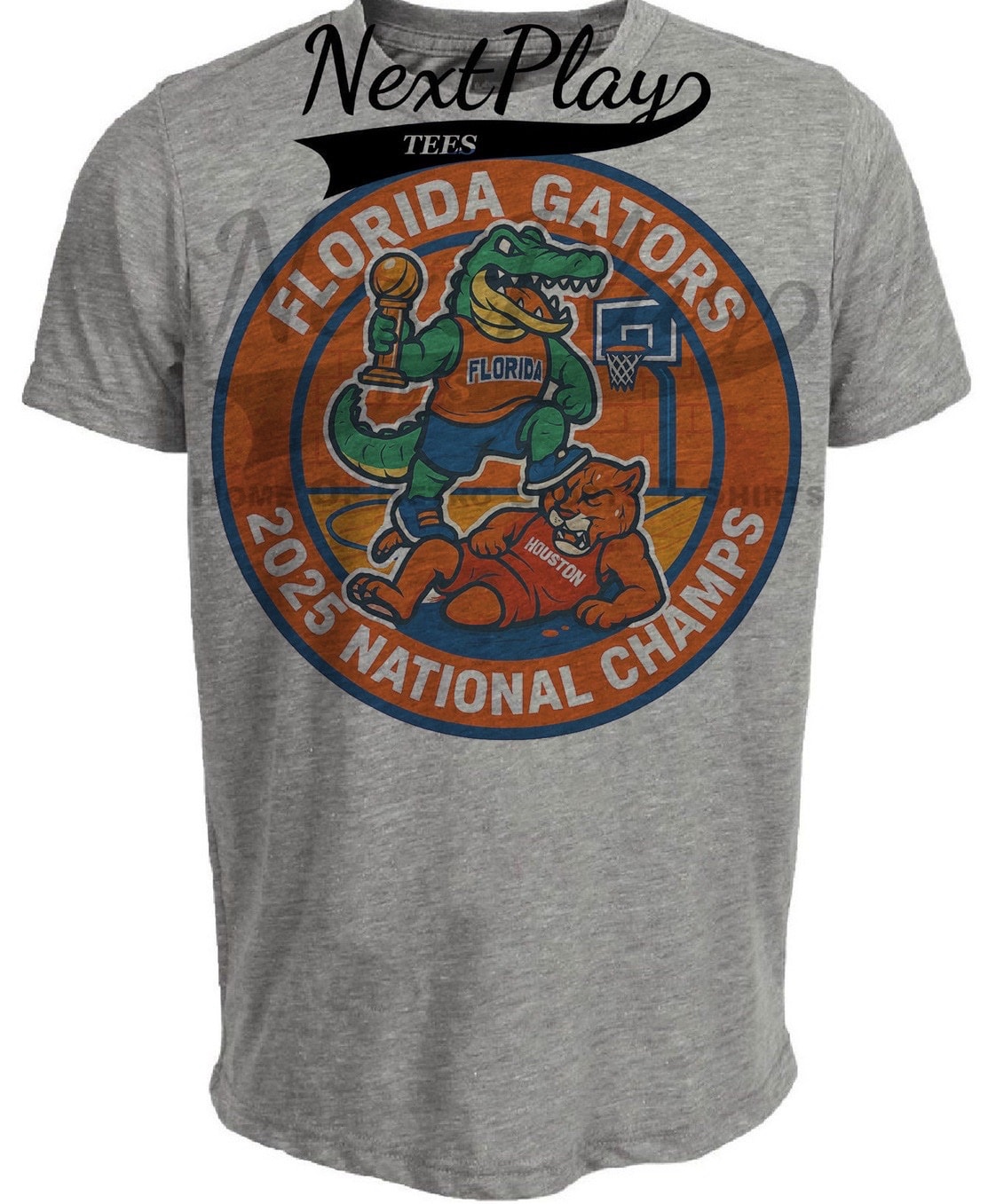 Florida Gators National Champions Exclusive Retro Orange March Madness Basketball Artwork Heather Gray Sublimated T-Shirt