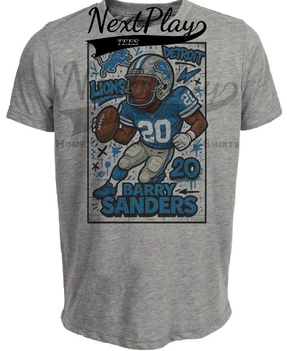 Detroit Lions Barry Sanders Exclusive Caricature Football Artwork Heather Gray Sublimated T-Shirt
