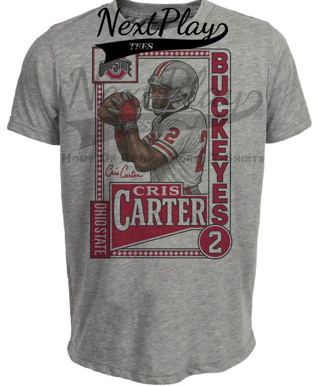Ohio State Cris Carter Exclusive Retro Football 1986 Artwork Heather Gray Sublimated T-Shirt