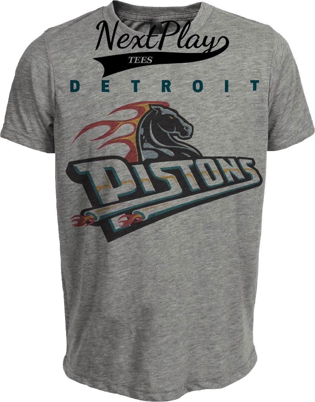 Detroit Pistons Retro Basketball 1998 Artwork Heather Gray Sublimated T-Shirt