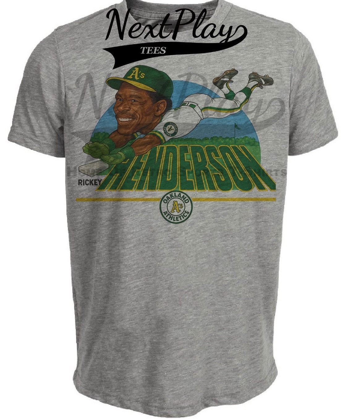 Oakland Athletics Rickey Henderson Exclusive Retro Baseball 1989 Artwork Heather Gray Sublimated T-Shirt