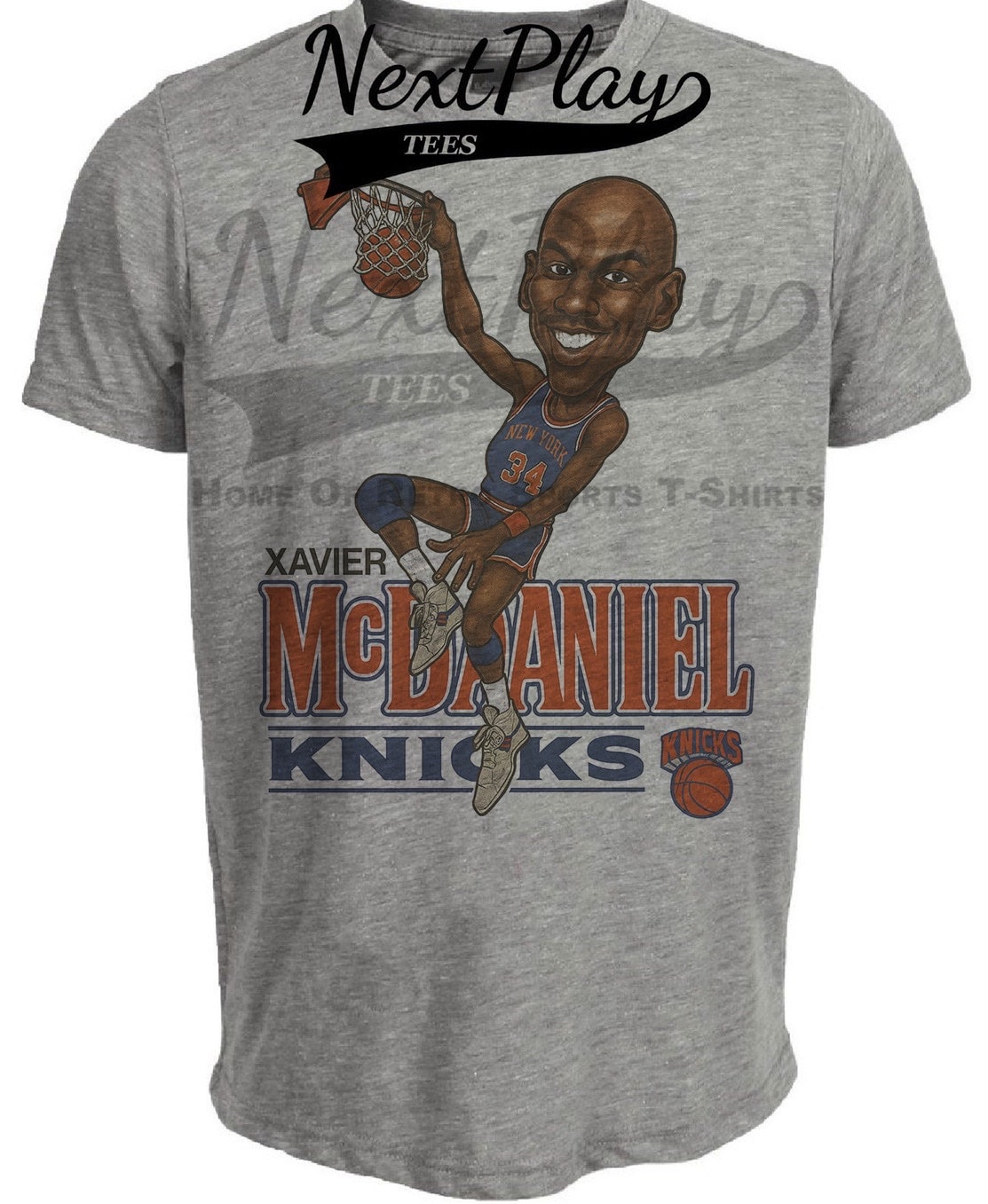 New York Knicks Xavier McDaniel Exclusive Retro Basketball 1991 Artwork Heather Gray Sublimated T-Shirt