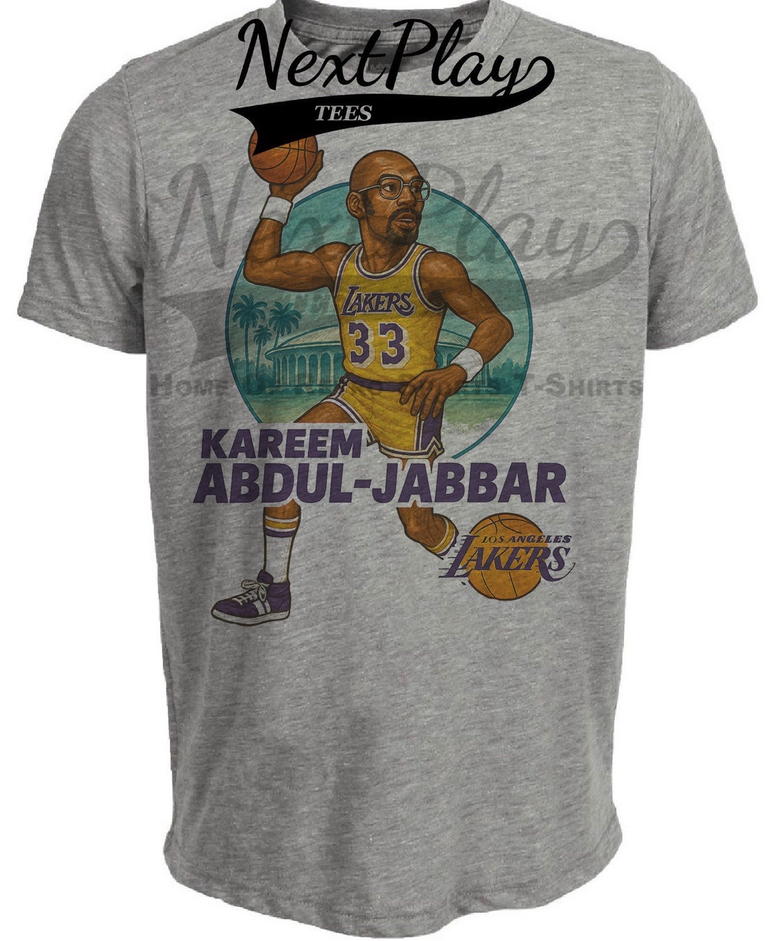 Los Angeles Lakers Kareem Abdul-Jabbar Exclusive Retro Basketball 1984 Artwork Heather Gray Sublimated T-Shirt