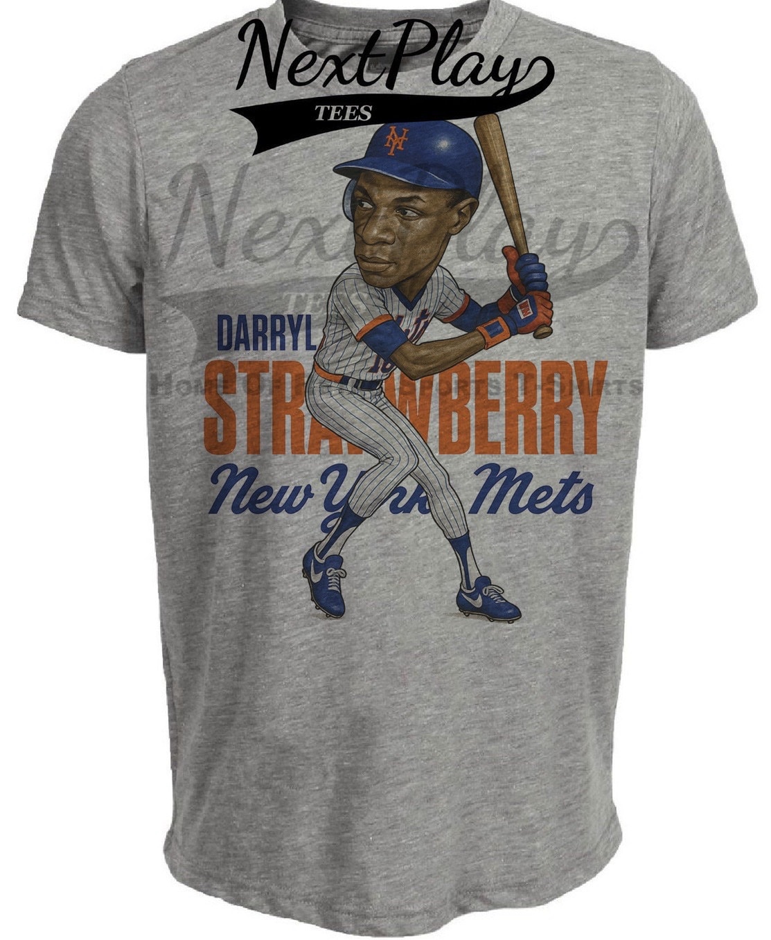 New York Mets Darryl Strawberry Exclusive Retro Baseball 1987 Artwork Heather Gray Sublimated T-Shirt