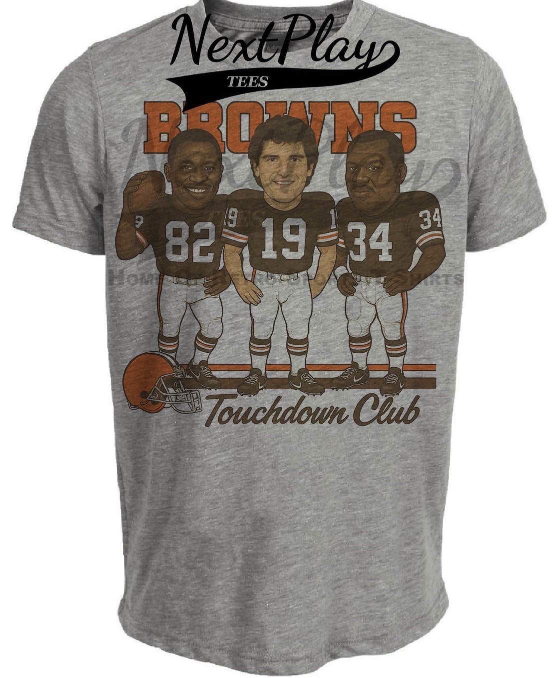 Cleveland Browns Touchdown Club Ozzie Newsome, Bernie Kosar, & Kevin Mack Exclusive Retro Football Artwork Heather Gray Sublimated T-Shirt