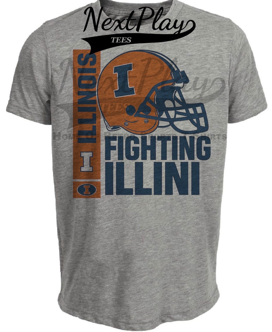 Illinois Fighting Illini Throwback Exclusive Retro Football Artwork Heather Gray Sublimated T-Shirt