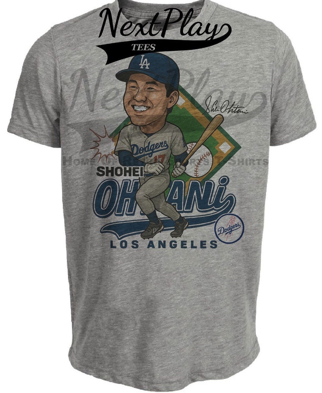 Los Angeles Dodgers Shohei Ohtani Caricature Exclusive Retro Baseball Artwork Heather Gray Sublimated T-Shirt