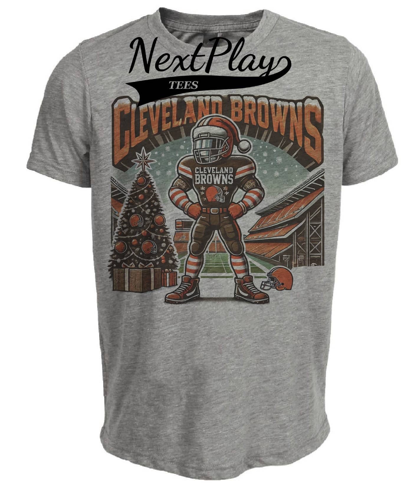 Cleveland Browns Holiday Exclusive Retro Football Artwork Heather Gray Sublimated T-Shirt
