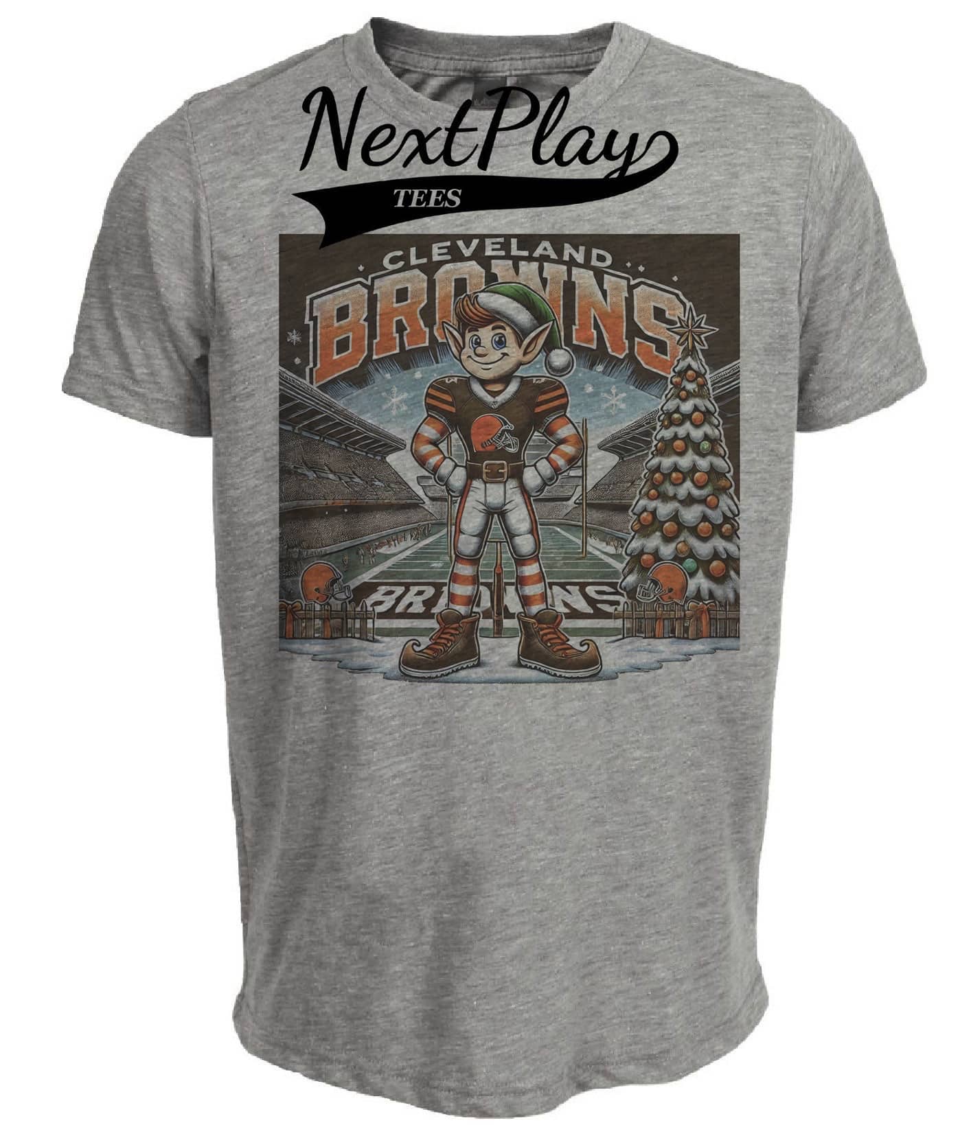 Cleveland Browns Holiday Exclusive Retro Football Mascot Artwork Heather Gray Sublimated T-Shirt