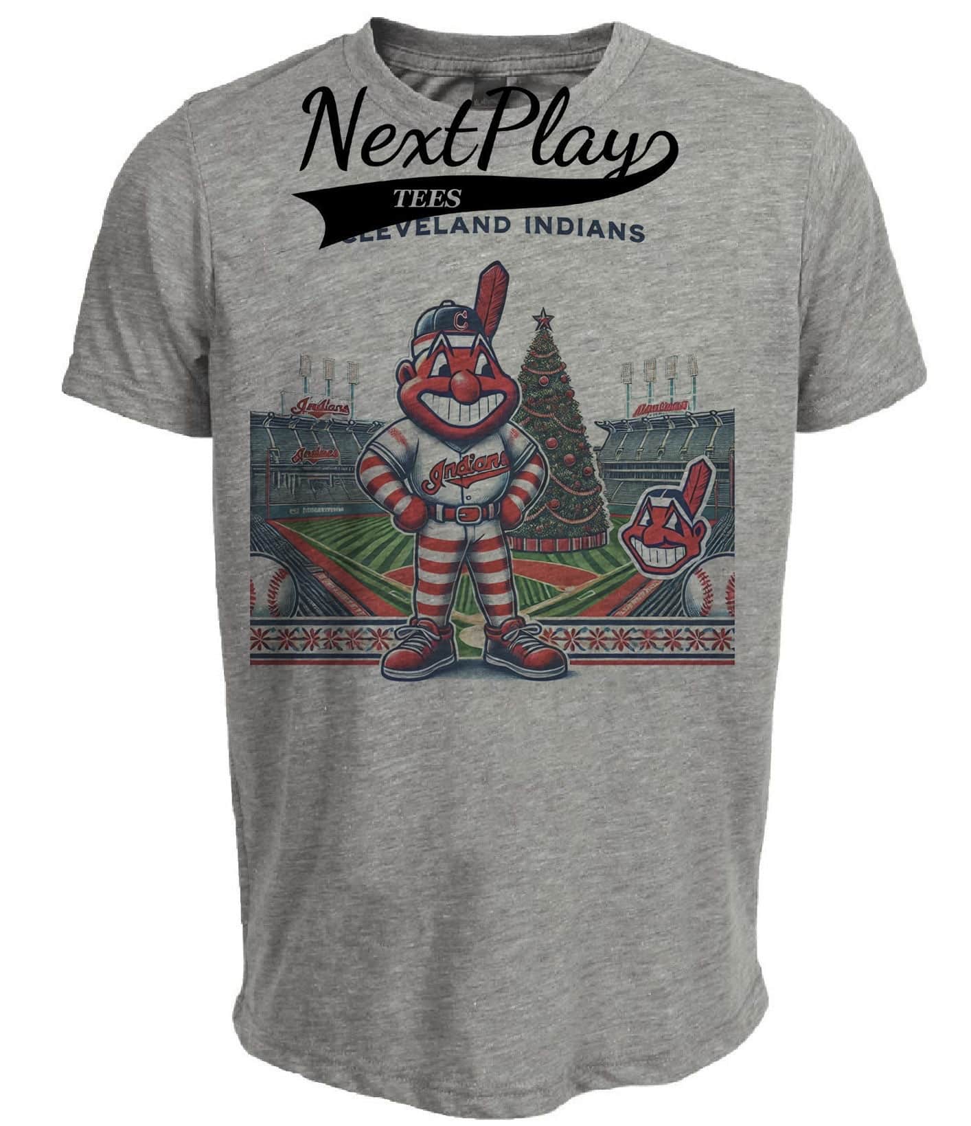 Cleveland Indians Holiday Exclusive Retro Baseball Artwork Heather Gray Sublimated T-Shirt