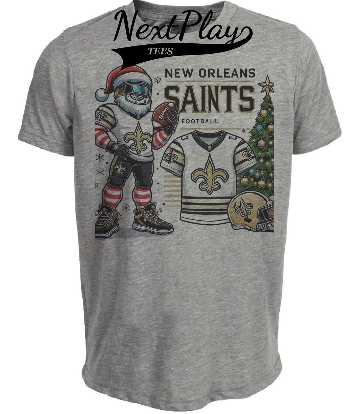 New Orleans Saints Holiday Exclusive Retro Football Artwork Heather Gray Sublimated T-Shirt