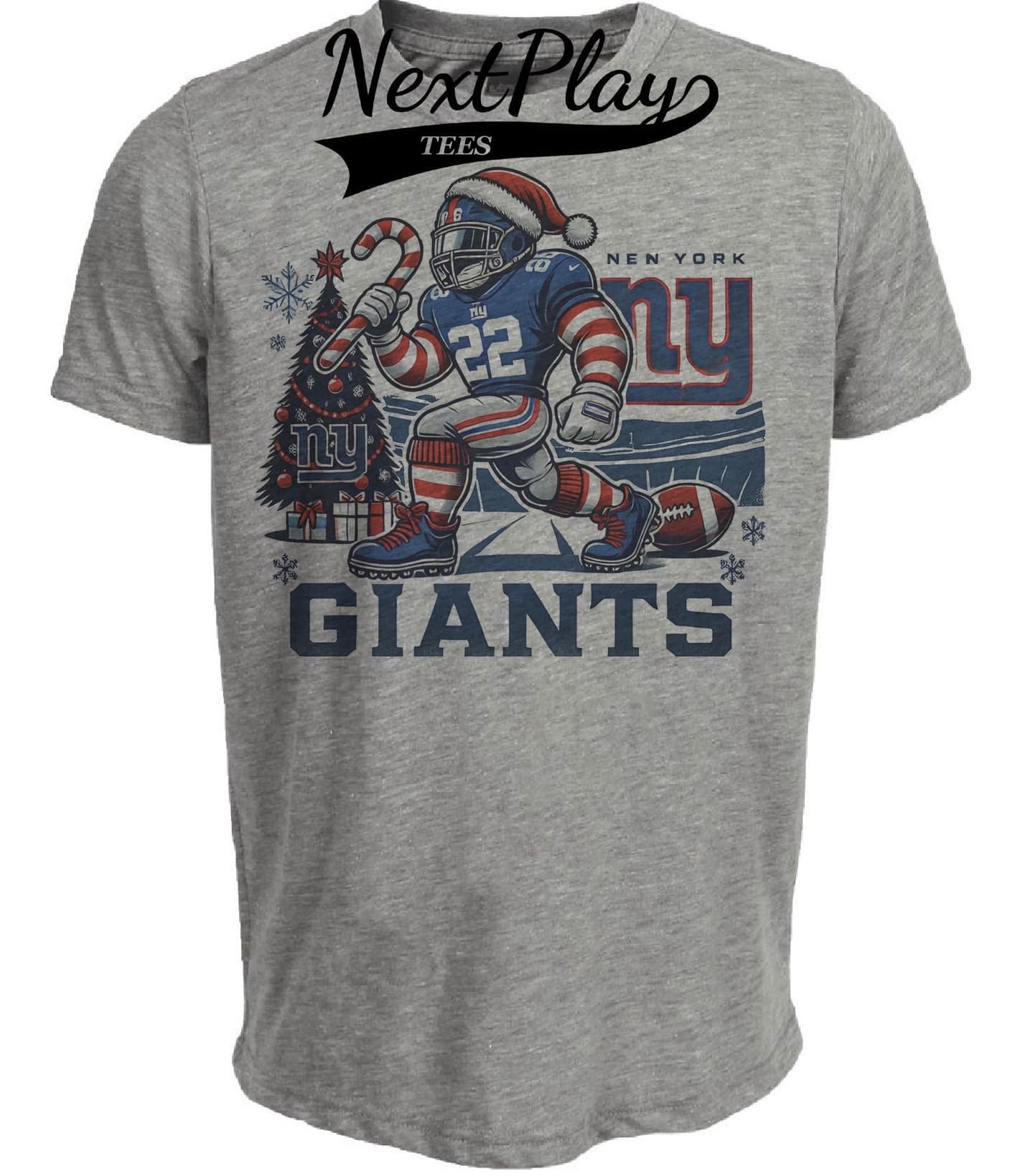 New York Giants Holiday Exclusive Retro Football Artwork Heather Gray Sublimated T-Shirt
