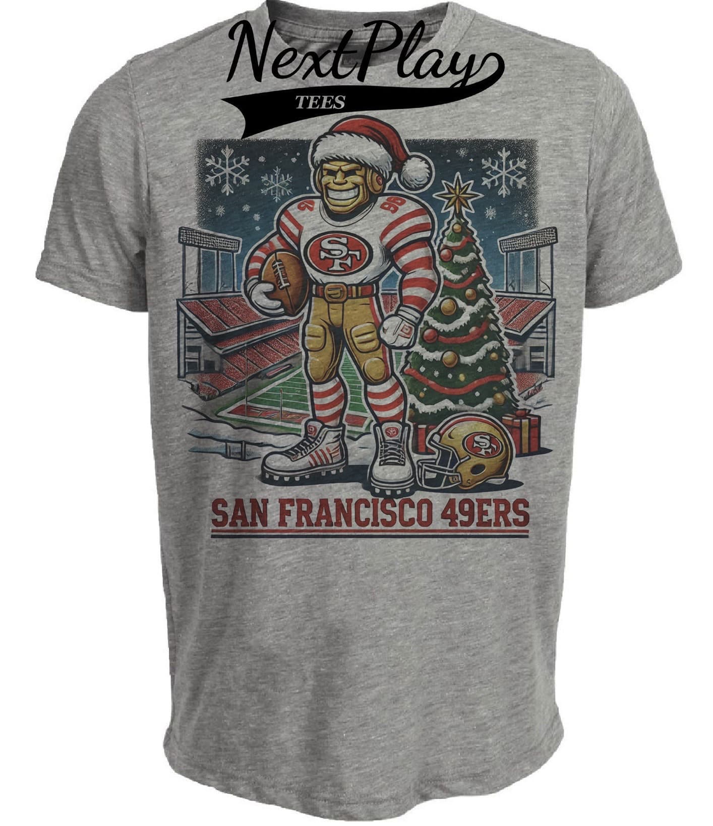 San Francisco 49ers Holiday Exclusive Retro Football Artwork Heather Gray Sublimated T-Shirt