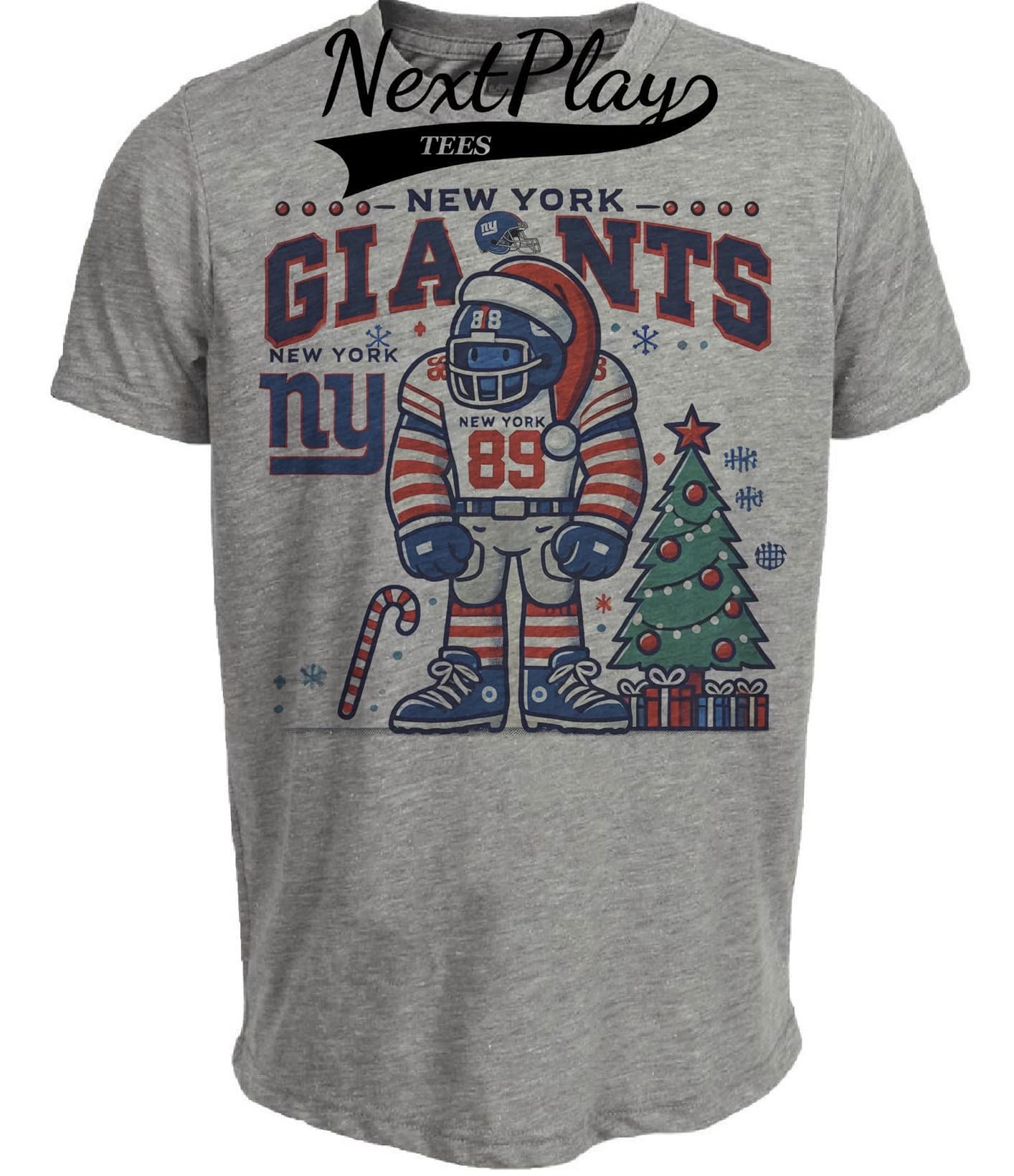 New York Giants Holiday Santa Exclusive Retro Football Artwork Heather Gray Sublimated T-Shirt