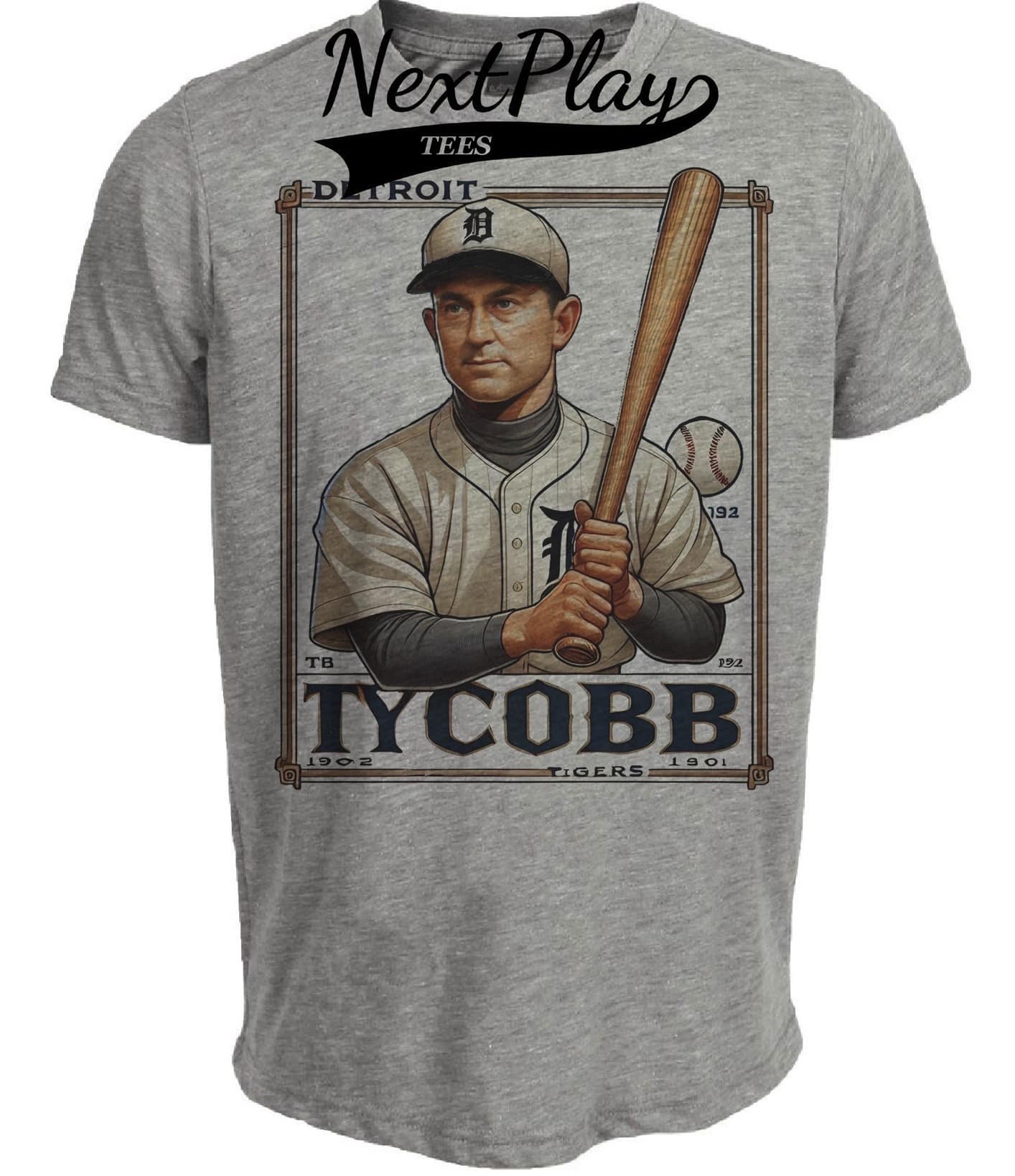 Detroit Tigers Ty Cobb Exclusive Retro Baseball 1902 Artwork Heather Gray Sublimated T-Shirt