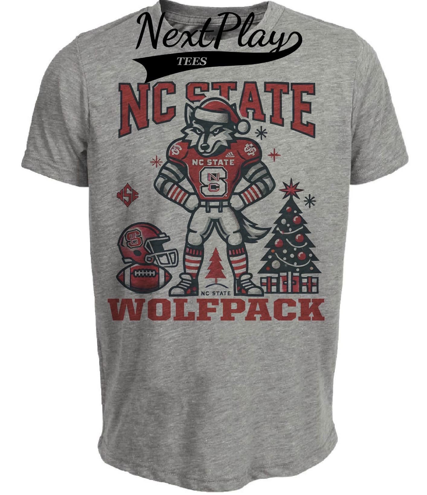NC State Wolfpack Holiday Exclusive Retro Football Artwork Heather Gray Sublimated T-Shirt