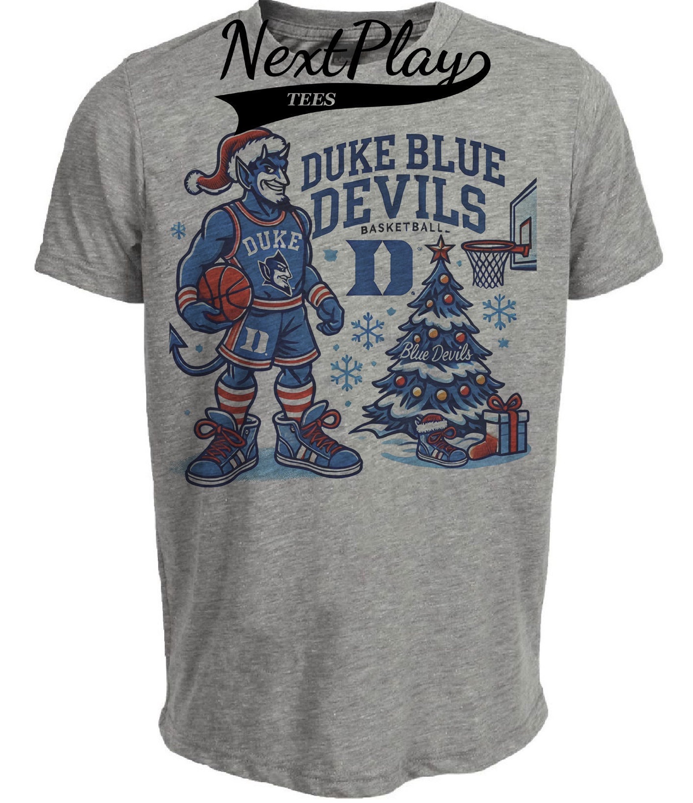 Duke Blue Devils Holiday Exclusive Retro Basketball Artwork Heather Gray Sublimated T-Shirt