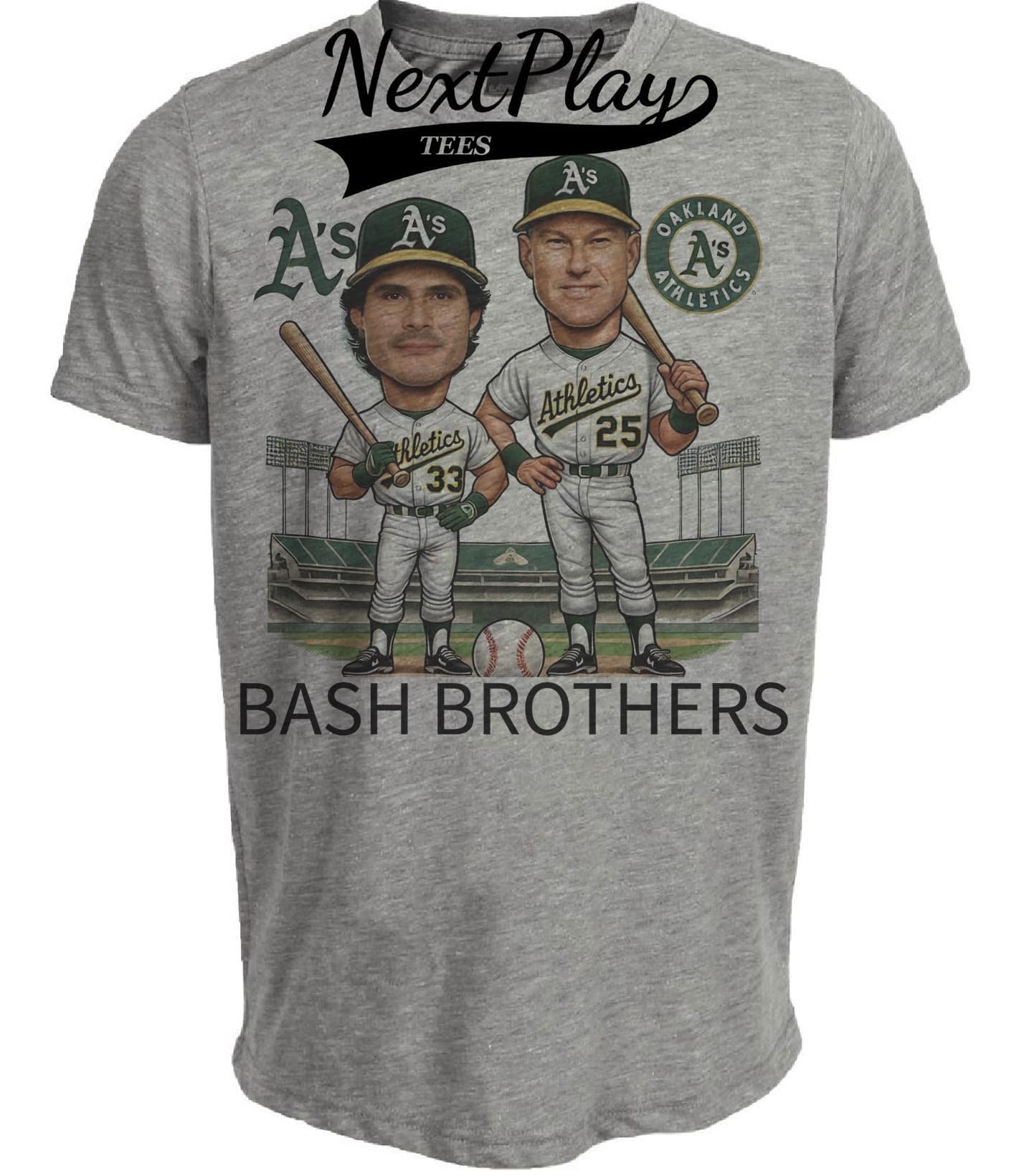 Oakland A’s Bash Brothers Jose Canseco Mark McGwire Exclusive Retro Baseball 1988 Artwork Heather Gray Sublimated T-Shirt