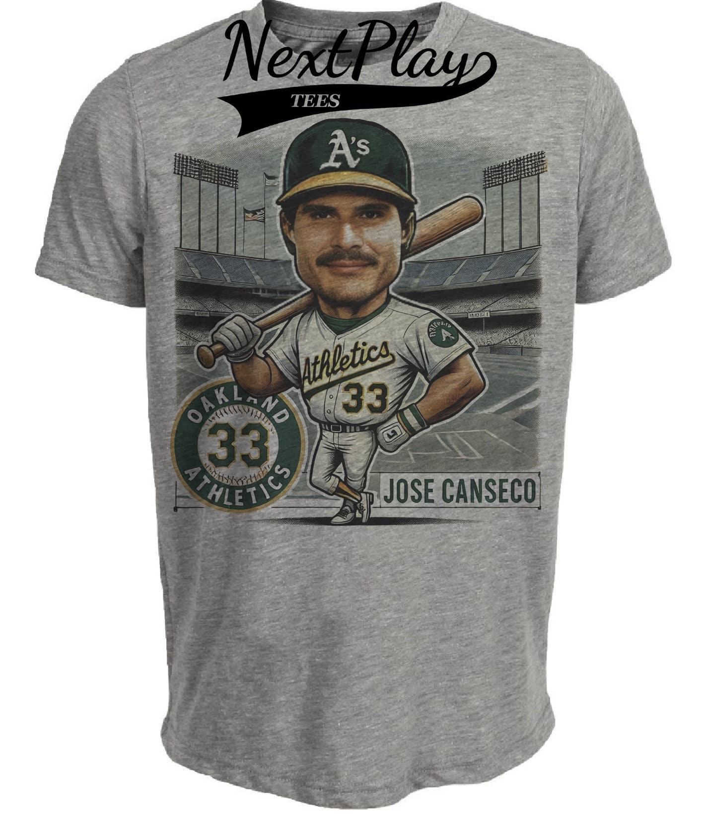 Oakland A’s Jose Canseco Exclusive Retro Baseball 1988 Artwork Heather Gray Sublimated T-Shirt