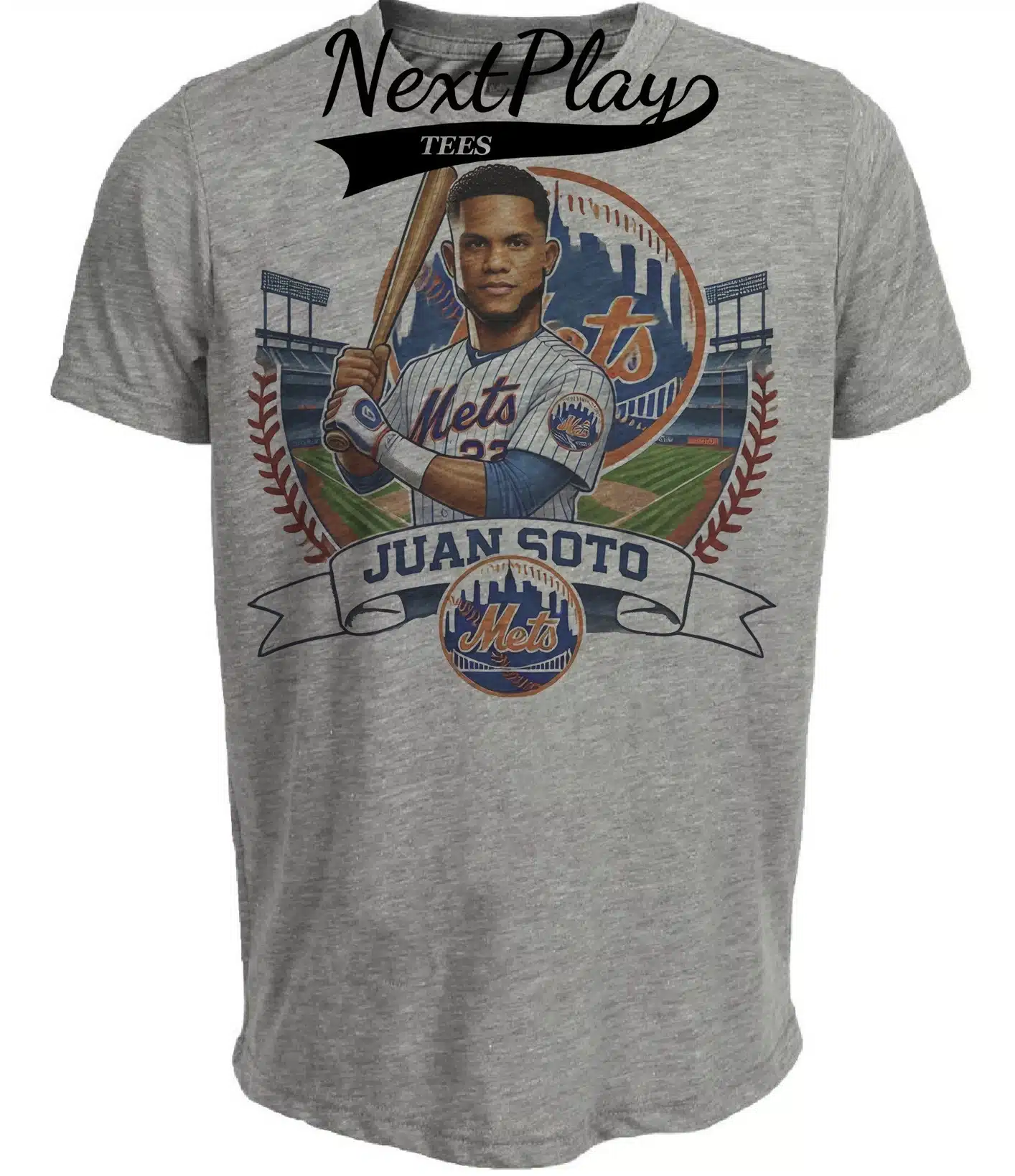 New York Mets Juan Soto Exclusive Stadium Retro Baseball Artwork Heather Gray Sublimated T-Shirt