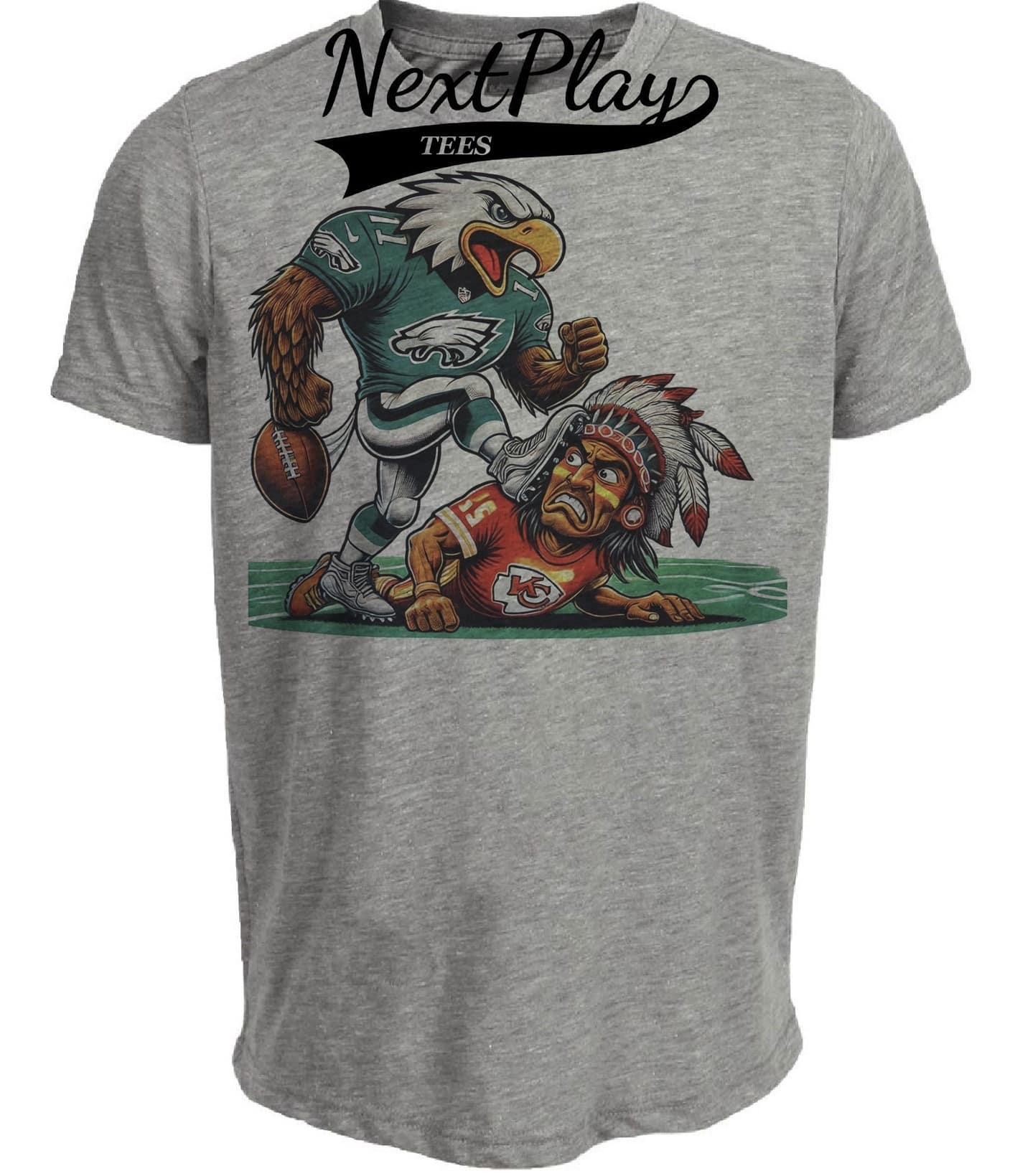Philadelphia Eagles vs. Kansas City Chiefs Exclusive Retro Rivalries Football Artwork Heather Gray Sublimated T-Shirt