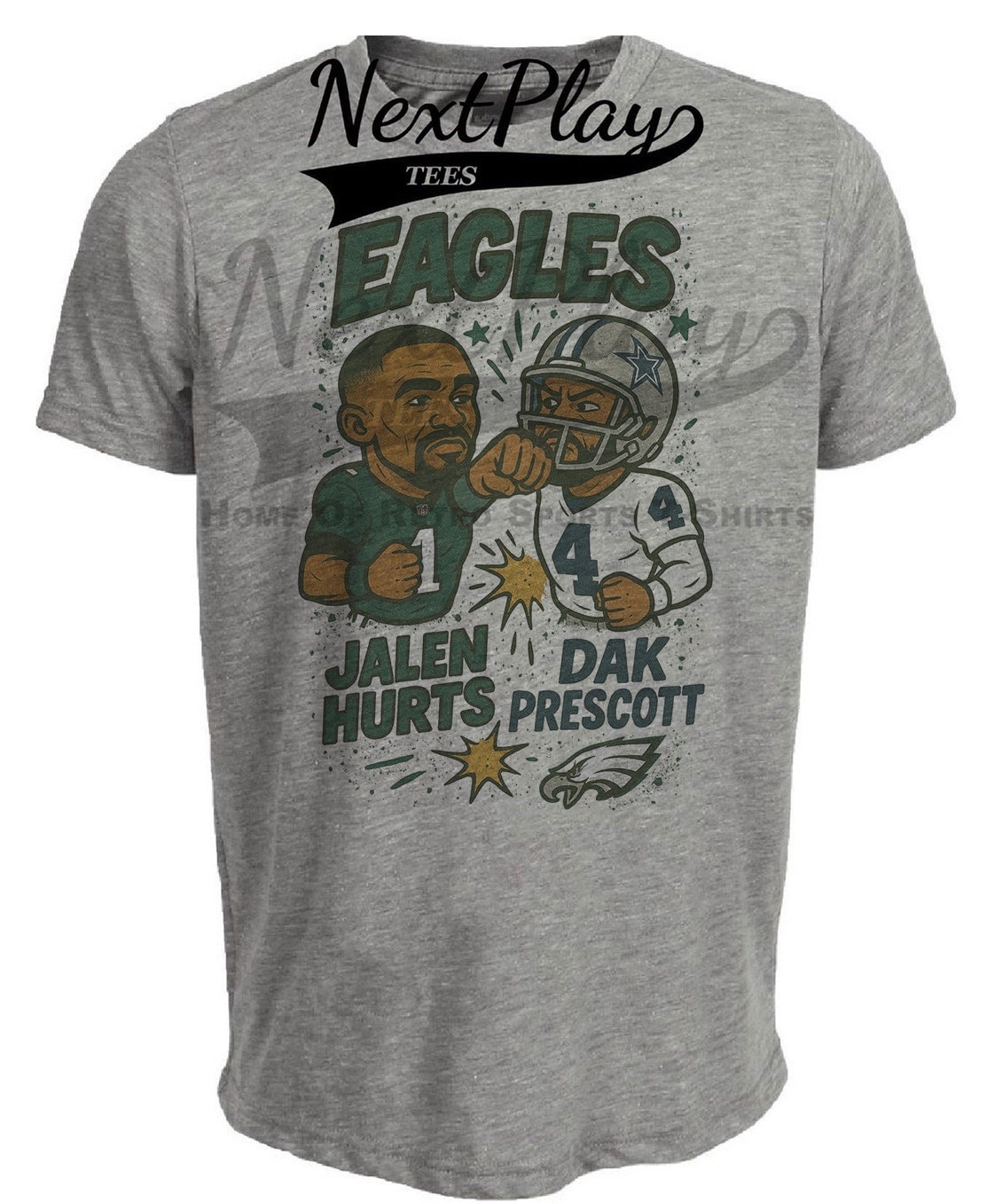 Philadelphia Eagles Jalen Hurts vs. Dallas Cowboys Dak Prescott Exclusive Retro Rivalries Football Artwork Heather Gray Sublimated T-Shirt