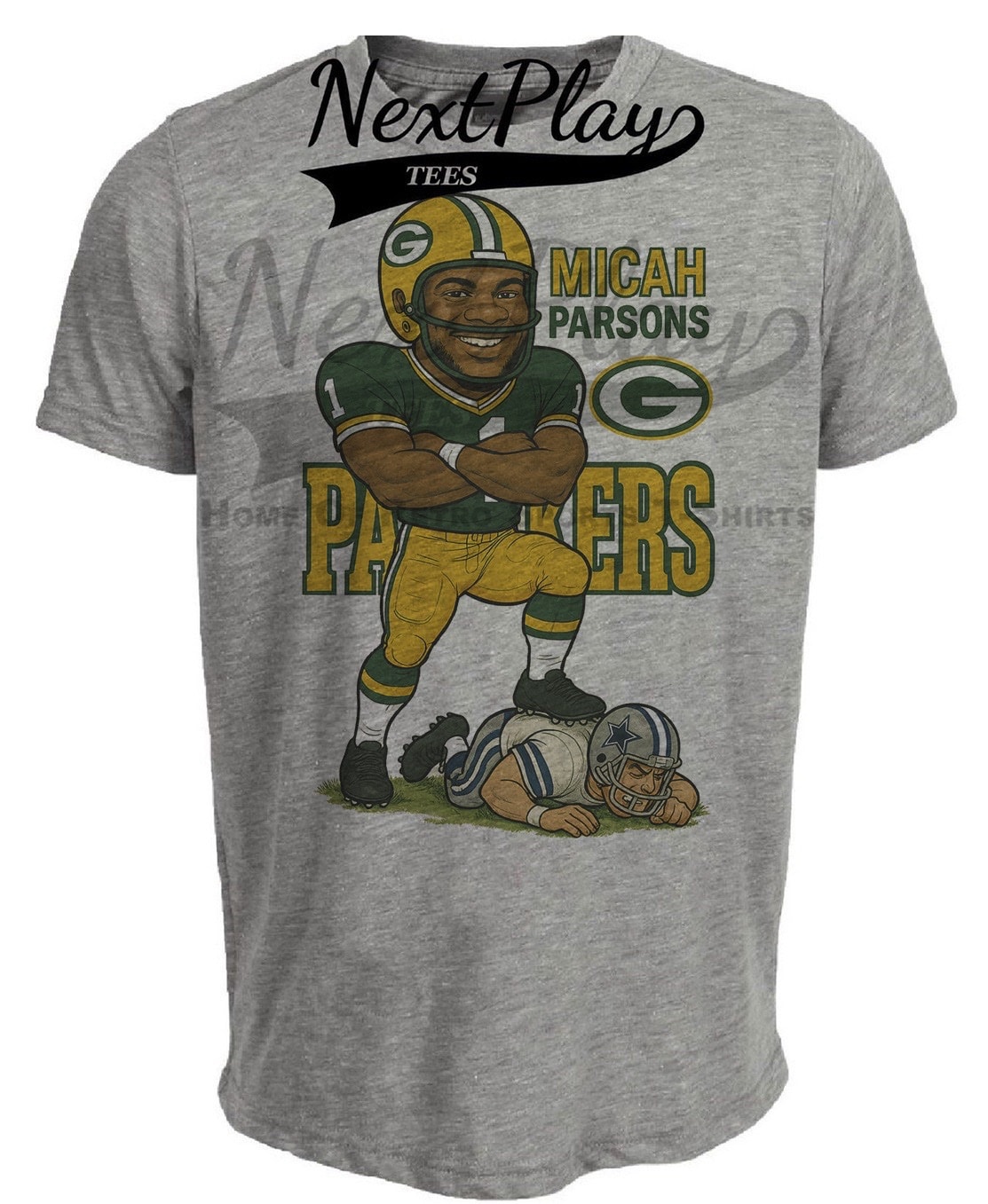 Green Bay Packers Micah Parsons vs. Dallas Cowboys Exclusive Retro Rivals Football Artwork Heather Gray Sublimated T-Shirt