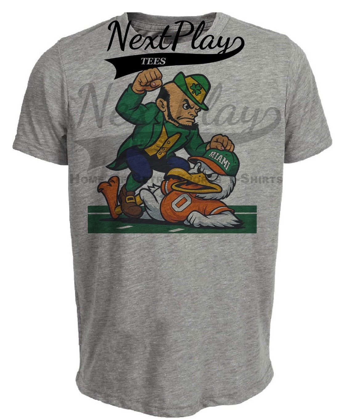 Notre Dame Fighting Irish vs. Miami Hurricanes Exclusive Retro Rivals Football Artwork Heather Gray Sublimated T-Shirt