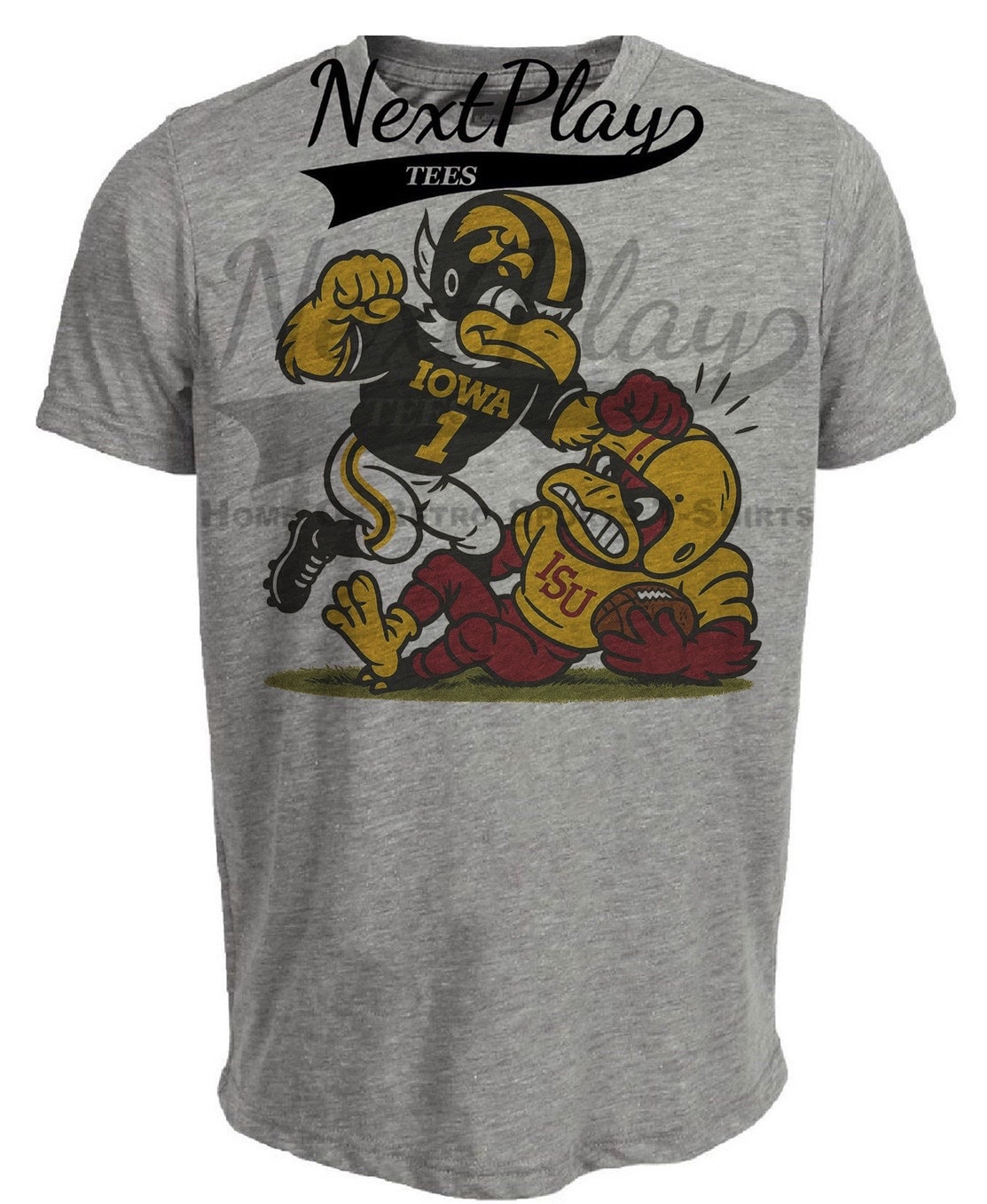 Iowa Hawkeyes vs. Iowa State Cyclones Exclusive Retro Rivals Football Artwork Heather Gray Sublimated T-Shirt
