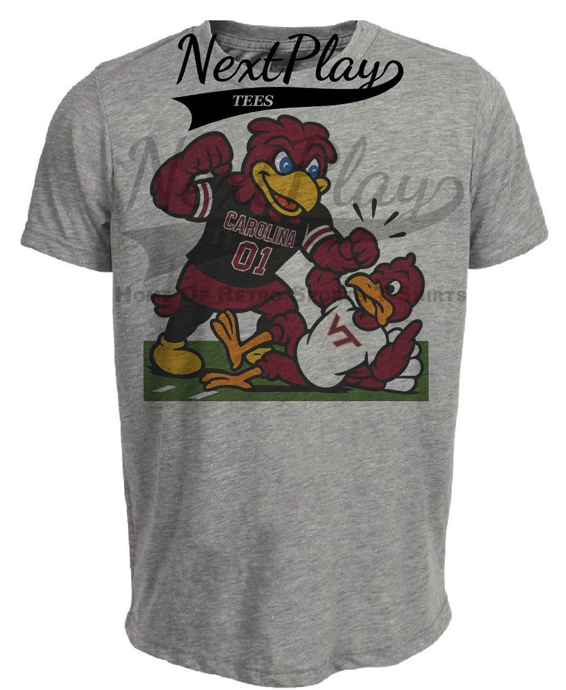 South Carolina Gamecocks vs. Virginia Tech Hokies Exclusive Retro Rivals Football Artwork Heather Gray Sublimated T-Shirt