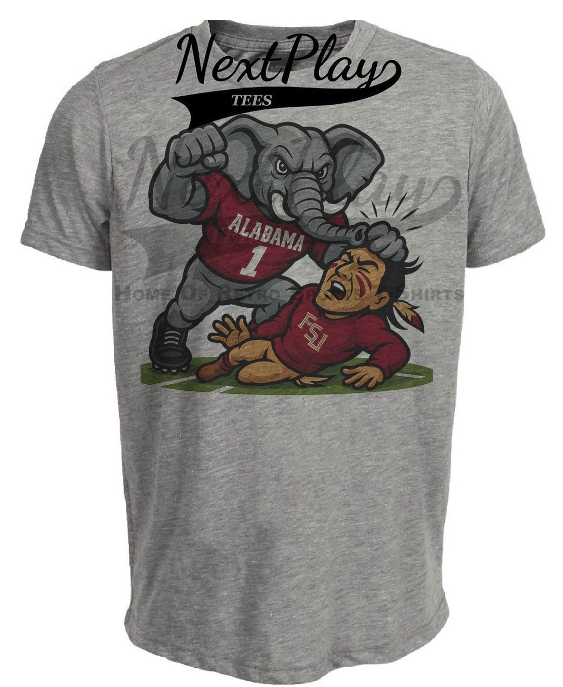 Alabama Crimson Tide vs. Florida State Seminoles Exclusive Retro Rivals Football Artwork Heather Gray Sublimated T-Shirt