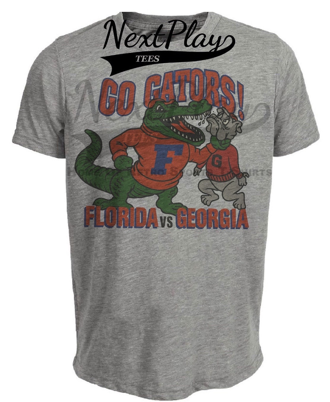 Florida Gators vs. Georgia Bulldogs Retro Rivals Choke Mascot Artwork Heather Gray Sublimated T-Shirt