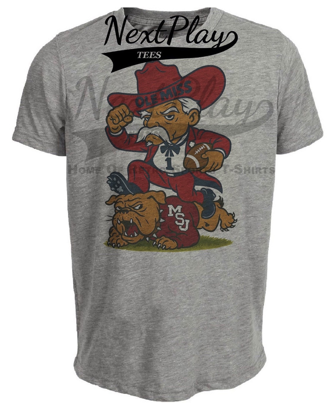 Ole Miss Rebels vs. Mississippi State Bulldogs Retro Rivals Week Football Artwork Heather Gray Sublimated T-Shirt