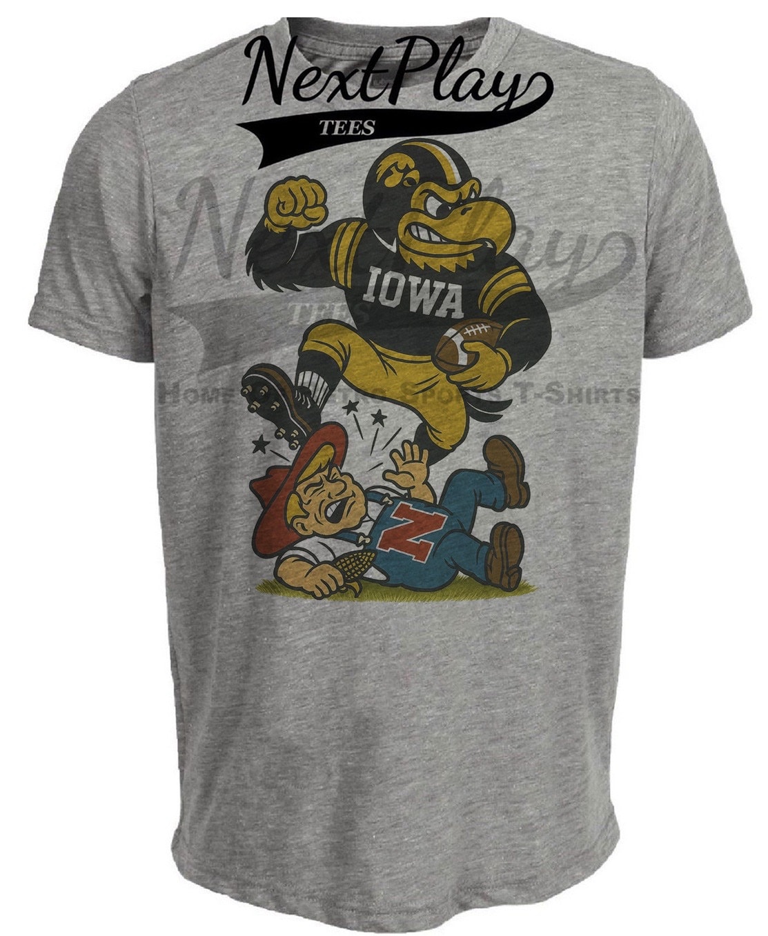 Iowa Hawkeyes vs. Nebraska Cornhuskers Retro Rivals Week Football Artwork Heather Gray Sublimated T-Shirt