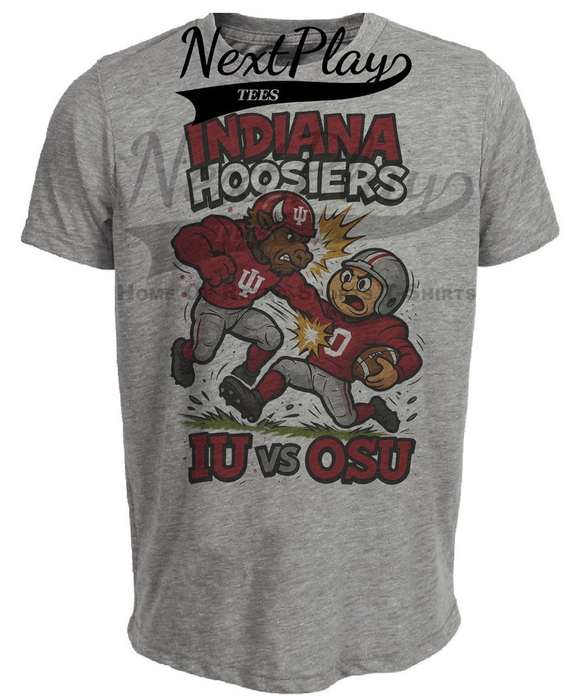 Indiana Hoosiers vs. Ohio State Buckeyes Retro Rivals Football Artwork Heather Gray Sublimated T-Shirt