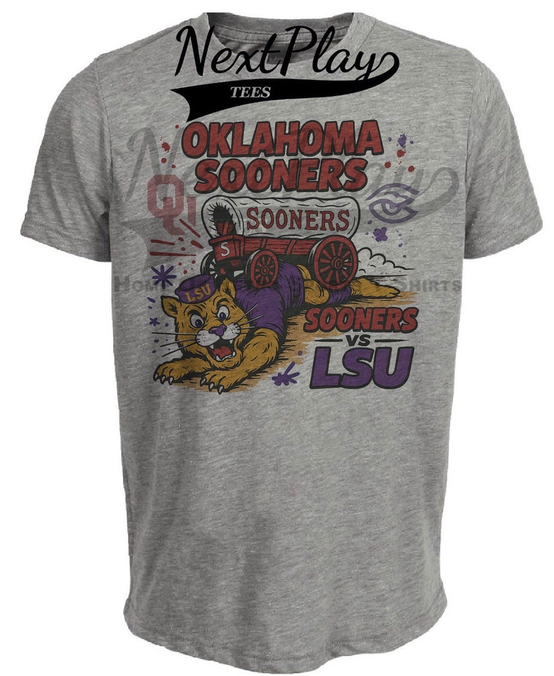 Oklahoma Sooners vs. LSU Tigers Retro Rivals Football Artwork Heather Gray Sublimated T-Shirt